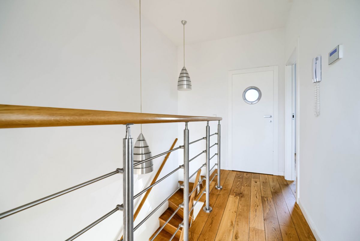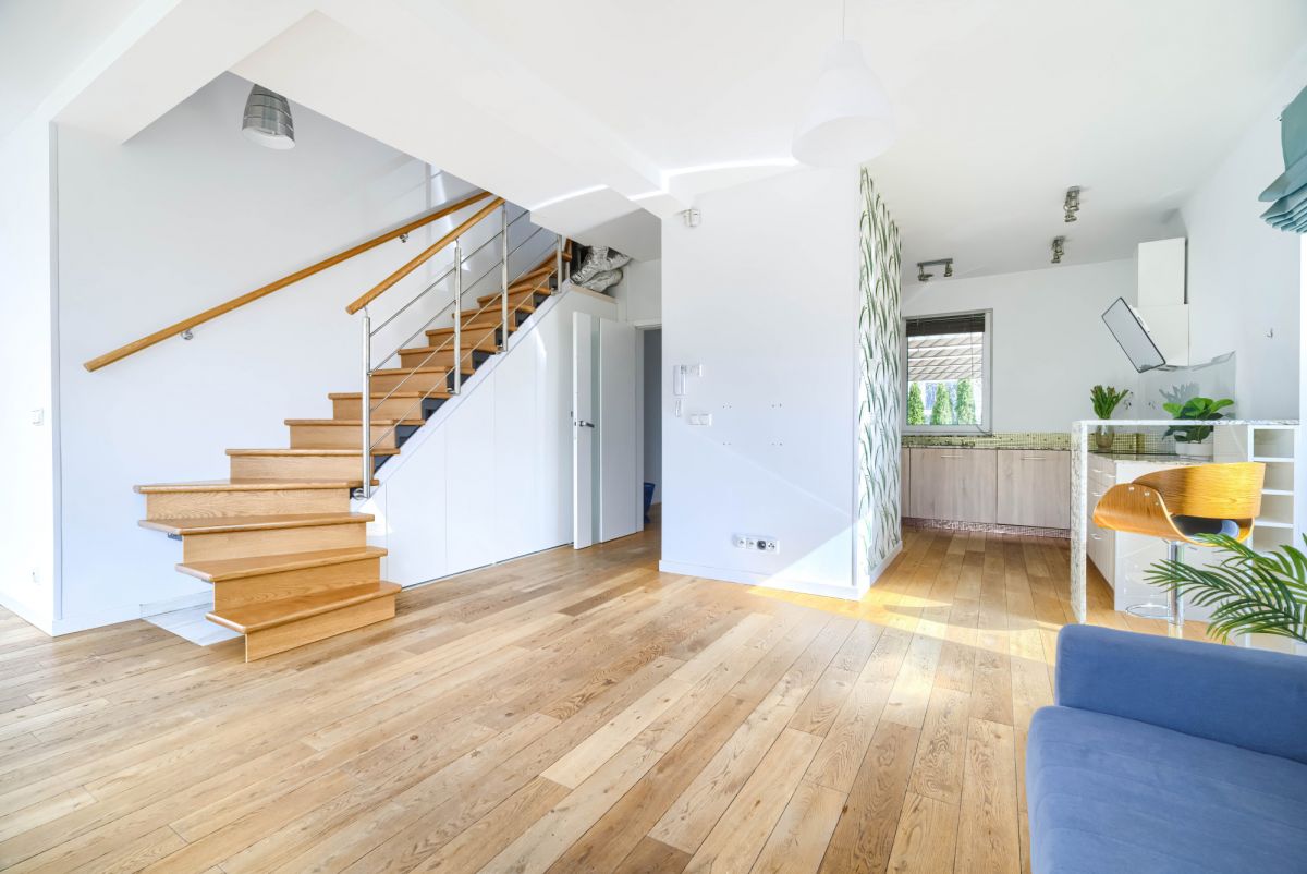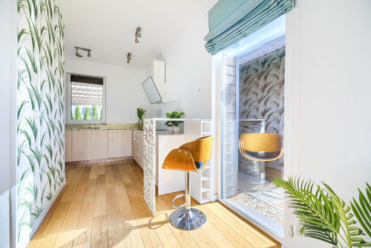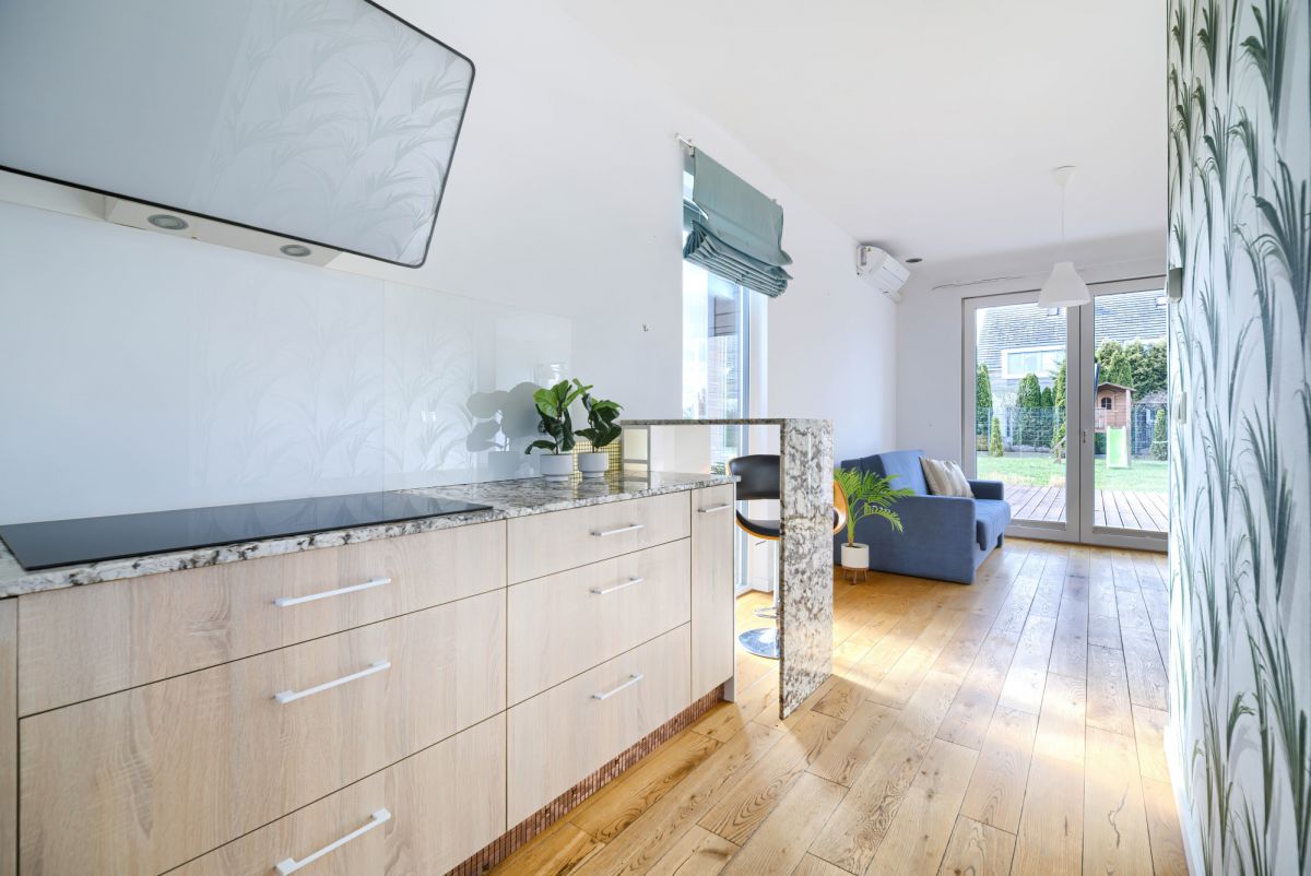 Wyremontowany dom w zabudowie bliźniaczej o powierzchni 90 m² rozłożony na dwóch kondygnacjach, zaprojektowany z myślą o rodzinie.