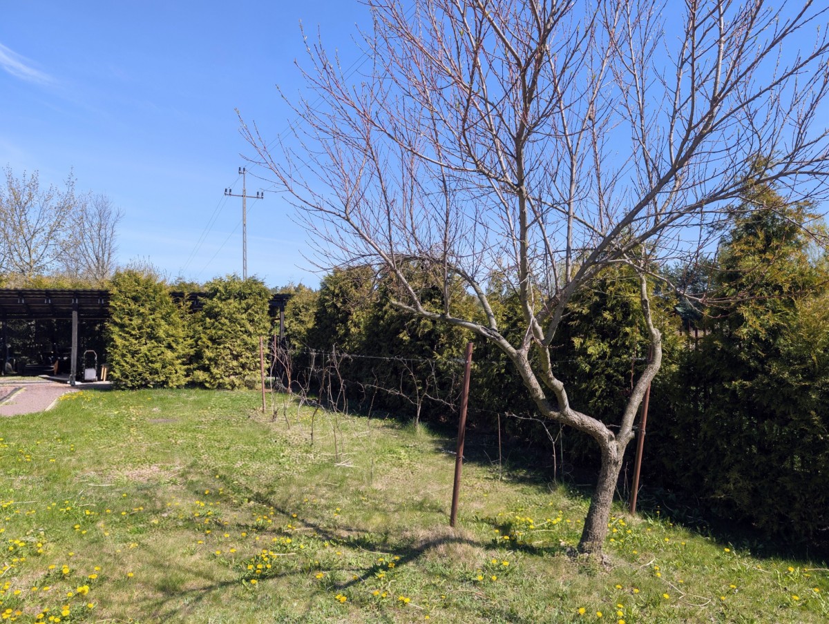 nasadzenia: tuje Brabant (ok. 2 m), winorośla, drzewa owocowe,
