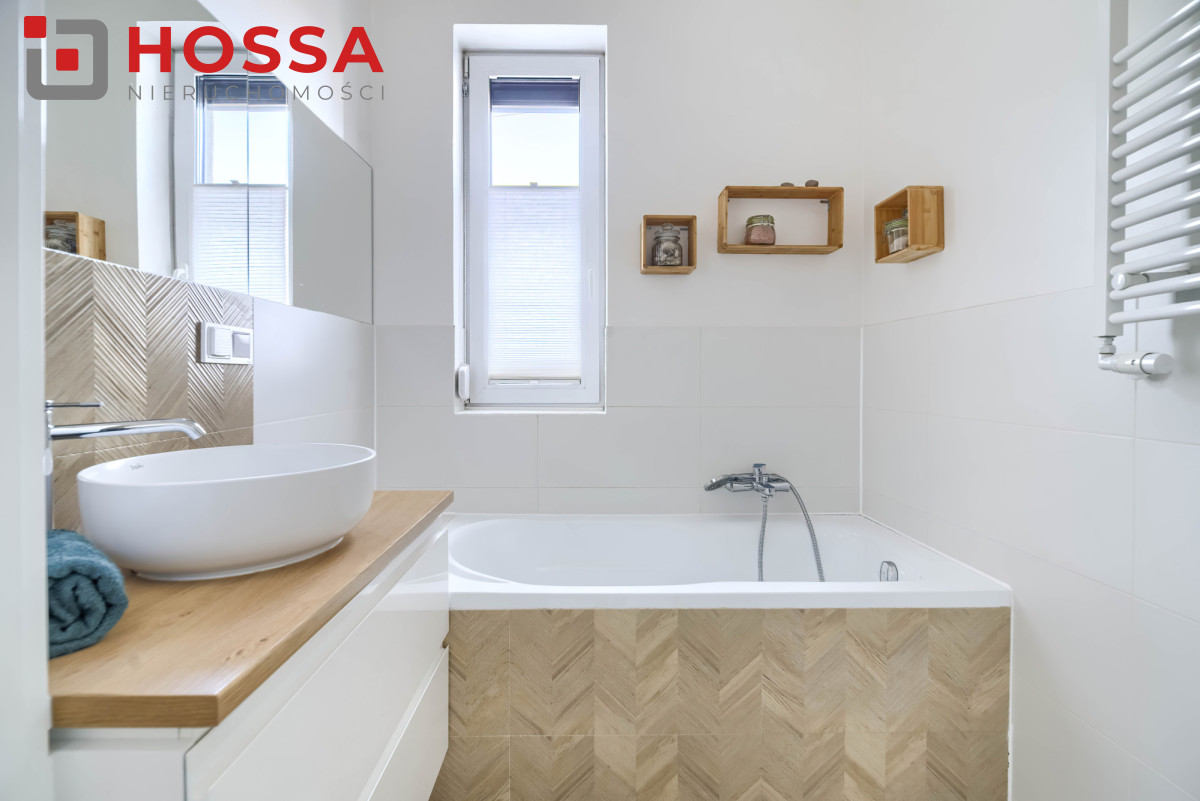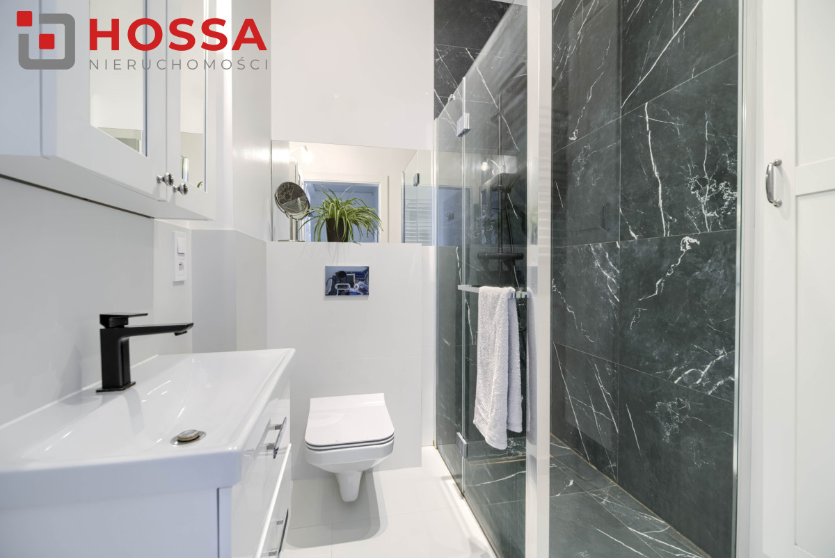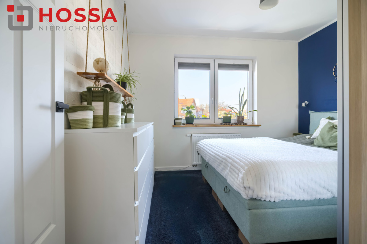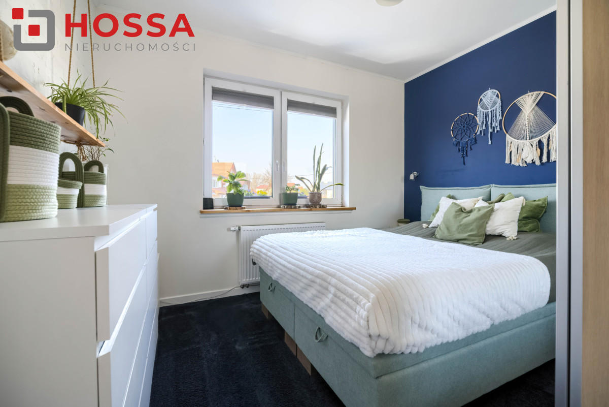 Standard i wyposażenie: dębowe schody, rolety wewnętrzne w całym domu, rolety blackout w sypialniach i na poddaszu, rolety zewnętrzne w salonie, dolnej łazience i pokojach z balkonem, monitoring (3 kamery z podglądem w aplikacji), klimatyzacja na poddaszu, piec gazowy dwufunkcyjny, ogrzewanie podłogowe w wybranych pomieszczeniach. Dodatkowym atutem jest brak czynszu i opłat administracyjnych. Narożne położenie zapewnia większą ilość światła oraz prywatności.
