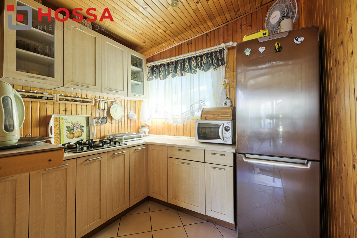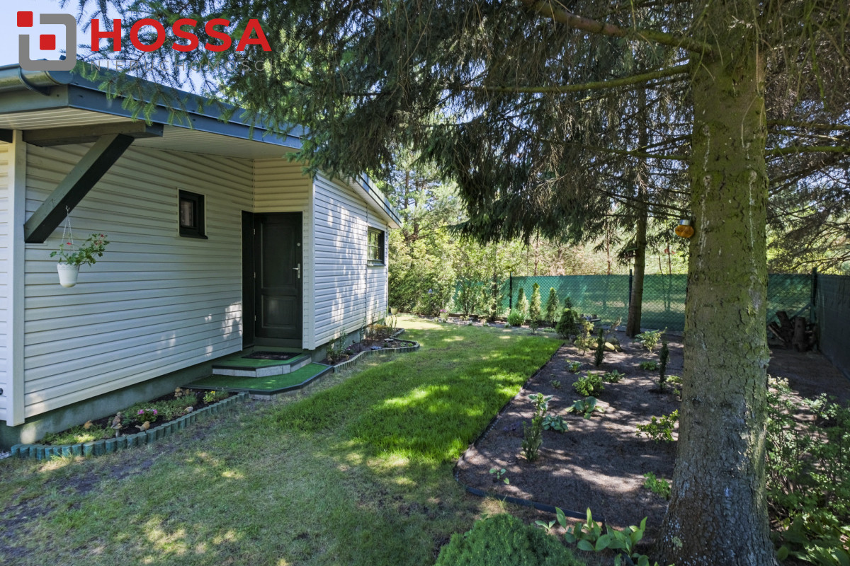 Domek ma wymieniony dach, okna, drzwi oraz na zewnątrz ma elewację z sidingu.