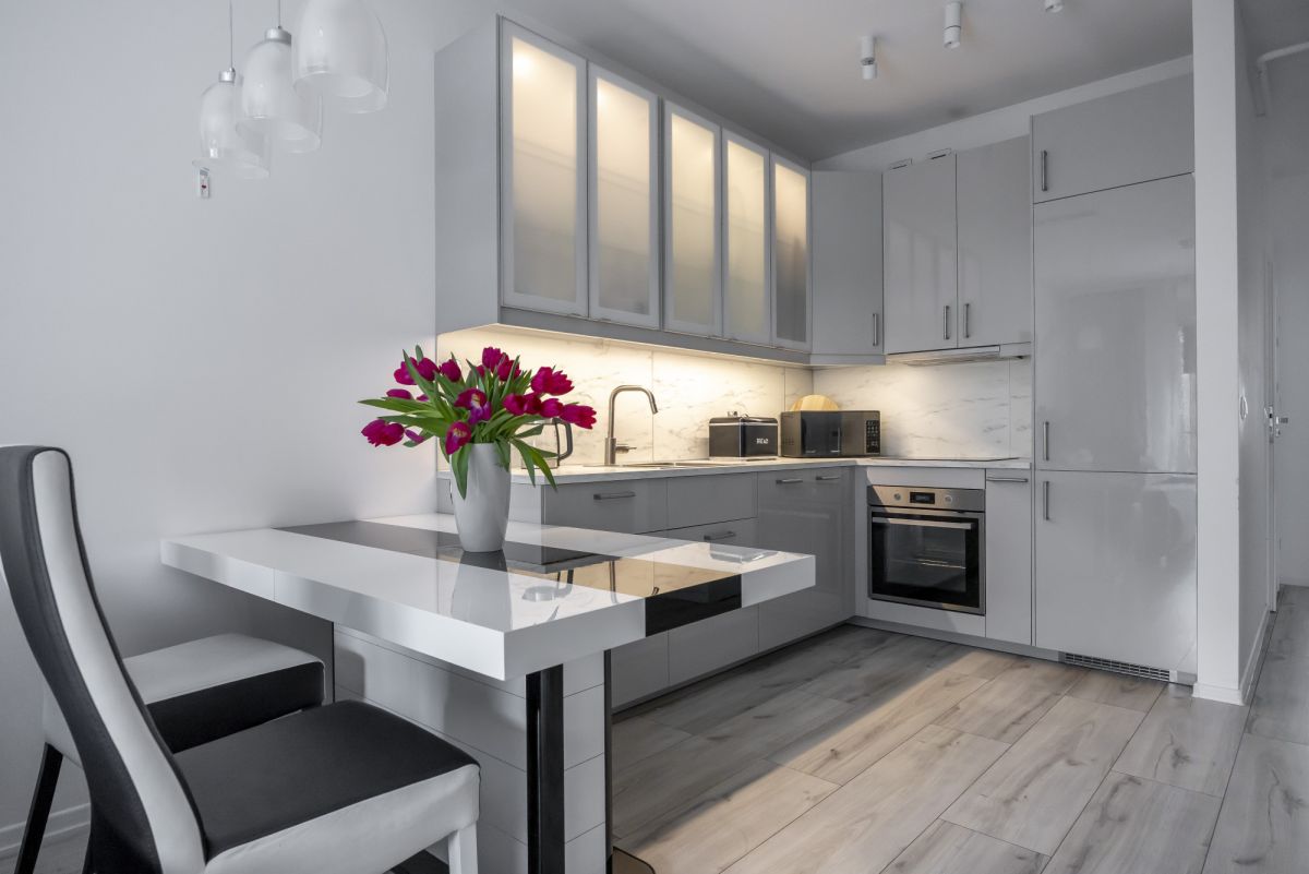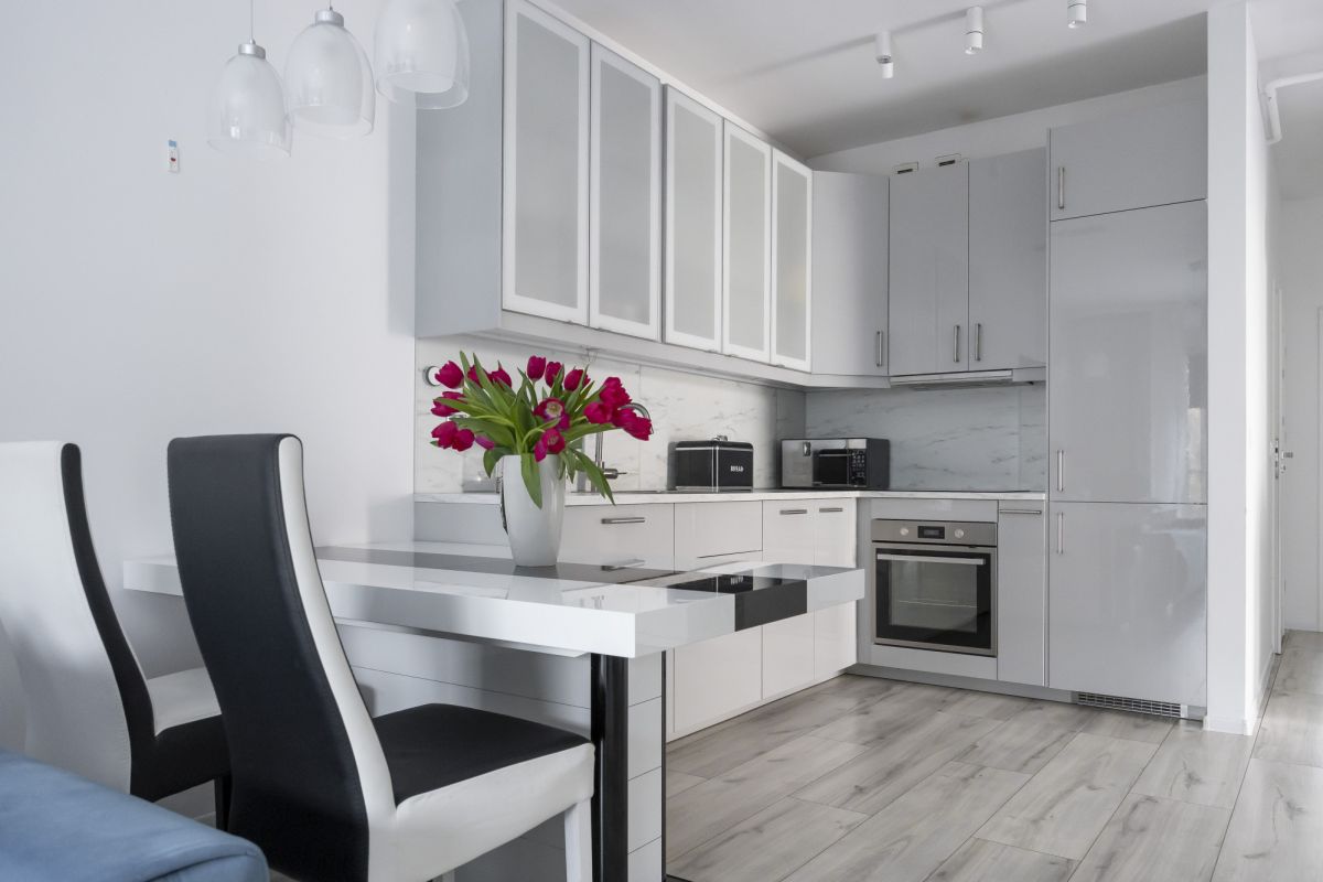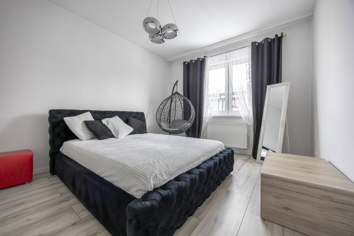 • Kuchnia: Nowoczesna zabudowa meblowa wraz z pełnym wyposażeniem AGD pozostaje w cenie nieruchomości.
