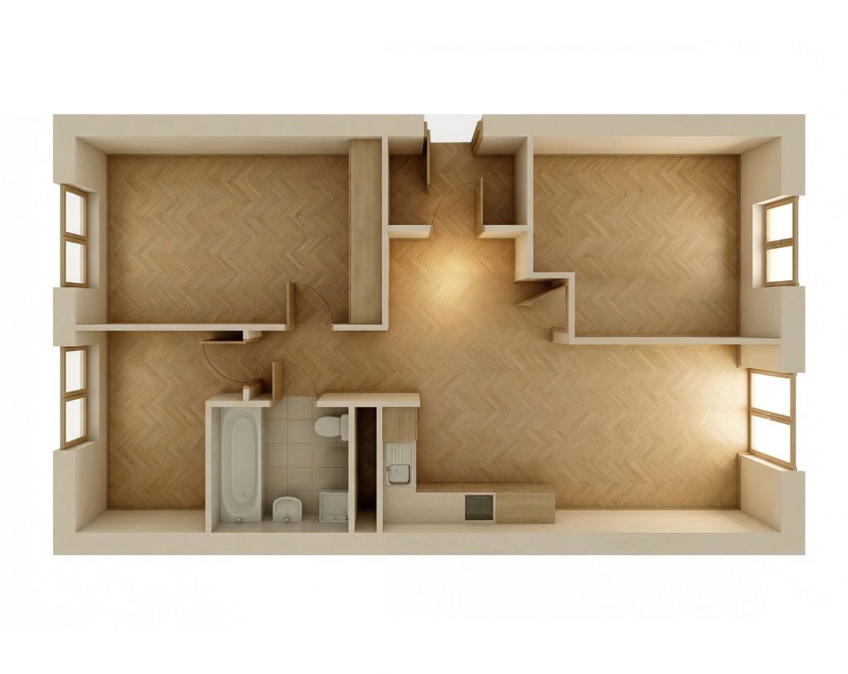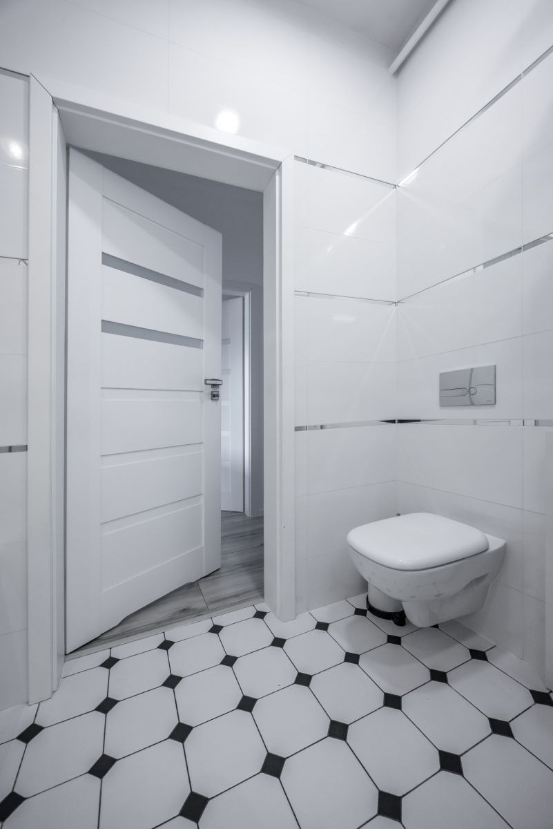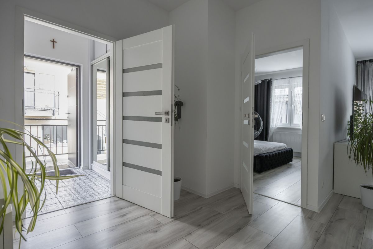 • Podłogi: Panele o wysokiej klasie ścieralności oraz gres w łazience.