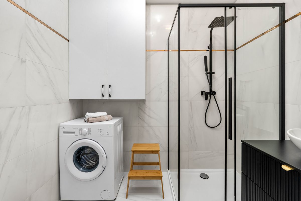 - łazienka z prysznicem (miejsce na pralkę i suszarkę)