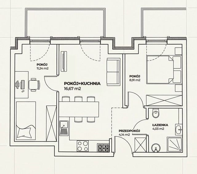 dopasujesz przestrzeń do swoich potrzeb (np. 2 większe pokoje zamiast 3).