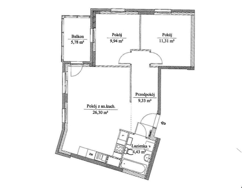- pokój 1 - 9,94 m.kw
