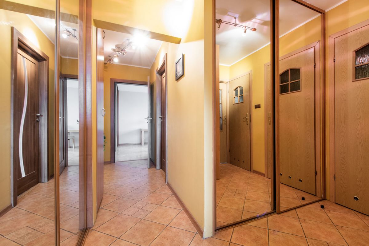 Wejście do mieszkania ze współdzielonego z jednymi sąsiadami korytarza, oddzielającego tę przestrzeń od klatki schodowej (cisza i dodatkowe zabezpieczenie). Po przekroczeniu drzwi wejściowych jesteśmy w przedpokoju z dwoma bardzo pojemnymi szafami na kurtki i płaszcze oraz szafką na buty. Po lewej wejście do salonu z balkonem, na wprost większa sypialnia, po prawej kuchnia (oddzielna, z oknem) oraz druga sypialnia, łazienka i oddzielne WC. Mieszkanie w stanie do częściowego remontu lub zamieszkania, w zależności od potrzeb. Do mieszkania można dostać się bez problemu osobom unikającym schodów- winda zjeżdża do poziomu wejścia do budynku.
