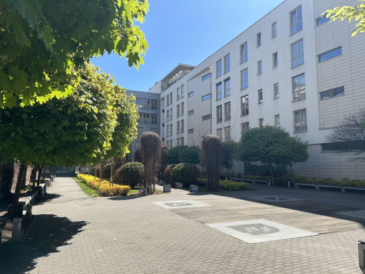 Hubertus wyróżnia się na tle okolicznych inwestycji dużą przestrzenią - budynki nie stoją blisko siebie, co daje poczucie swobody i prywatności. Największym atutem jest tu teren między budynkami: szerokie dziedzińce z dużą liczbą wysokich drzew i krzewów, które tworzą widoczny z okien ogród i skutecznie izolują od miejskiego zgiełku.