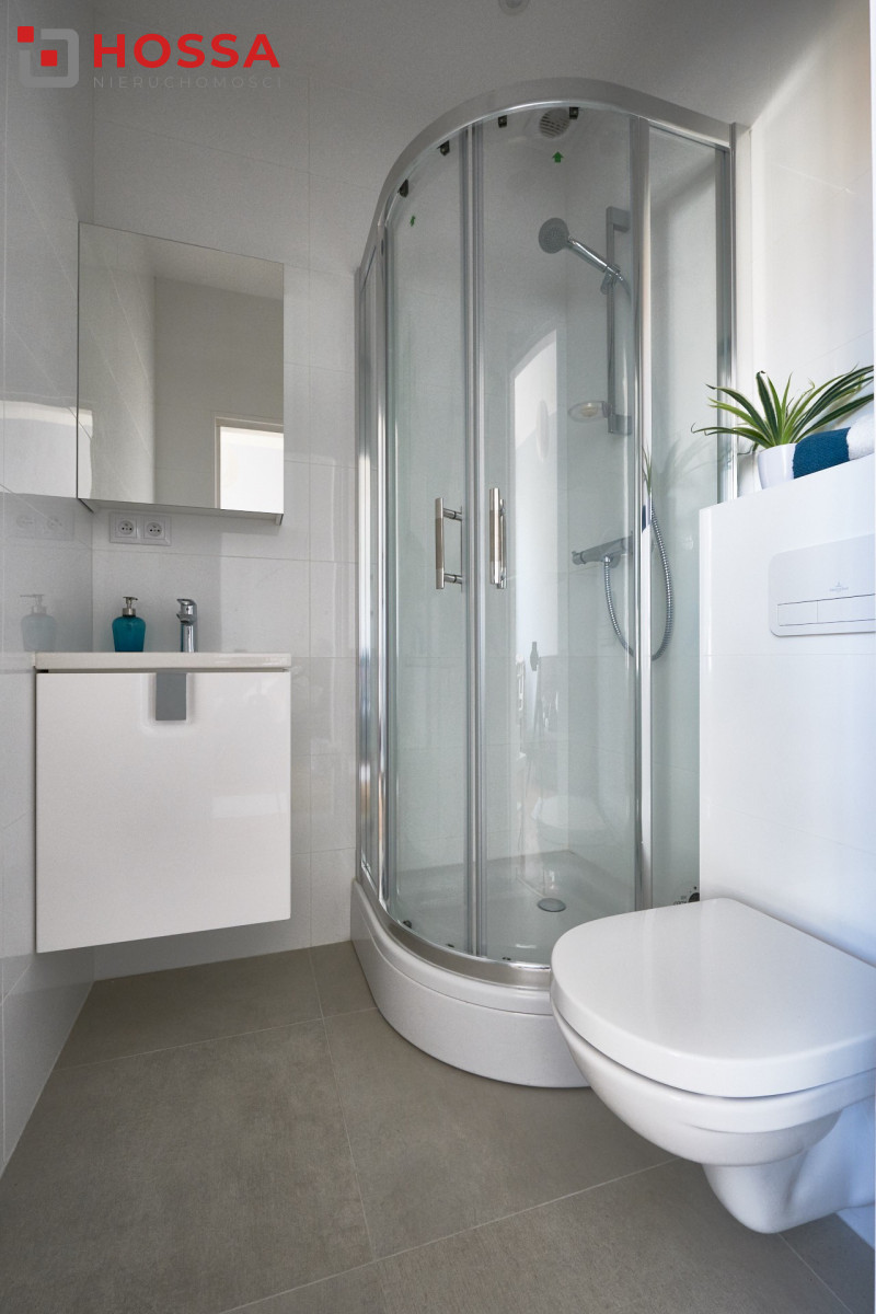 Na metraż mieszkania składają się pokój dzienny z wydzielonym aneksem kuchennym 14,50 m2, łazienki z kabiną prysznicową oraz przedpokoju.