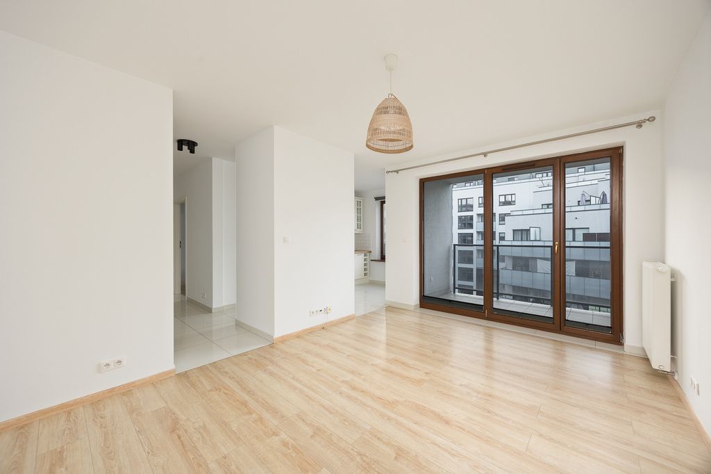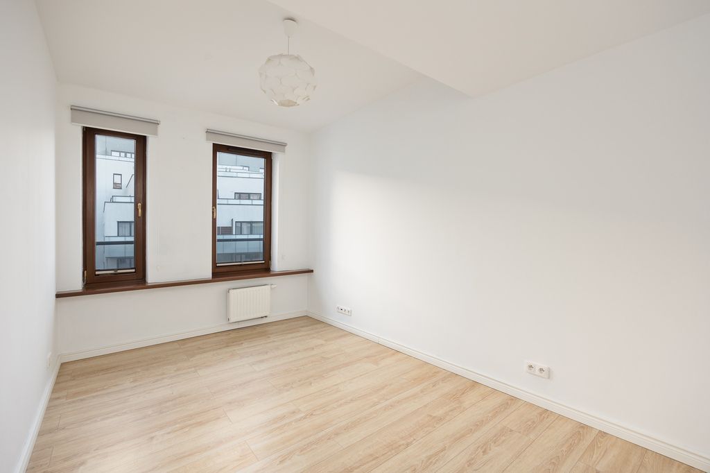 Mieszkanie jest w bardzo dobrym stanie technicznym, świeżo odświeżone i odmalowane. Wnętrze wykończone jest w ponadczasowym standardzie, z panelami oraz gresem na podłogach. W łazience znajduje się prysznic. Nowoczesne drewniane okna skierowane są na zachód, dzięki czemu mieszkanie jest dobrze doświetlone i pozostaje ciche, ponieważ wychodzi na wewnętrzne patio.