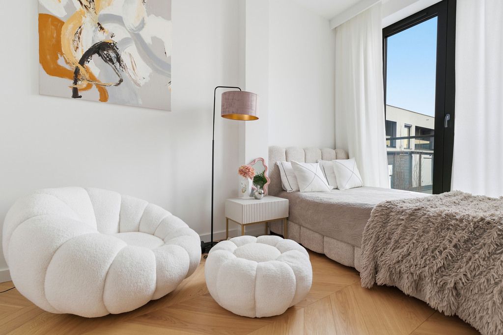 Największym atutem apartamentu jest prywatny ogród, który tworzy naturalne przedłużenie salonu. To idealna przestrzeń na poranną kawę, spotkania z przyjaciółmi czy bezpieczną strefę zabawy dla dzieci.