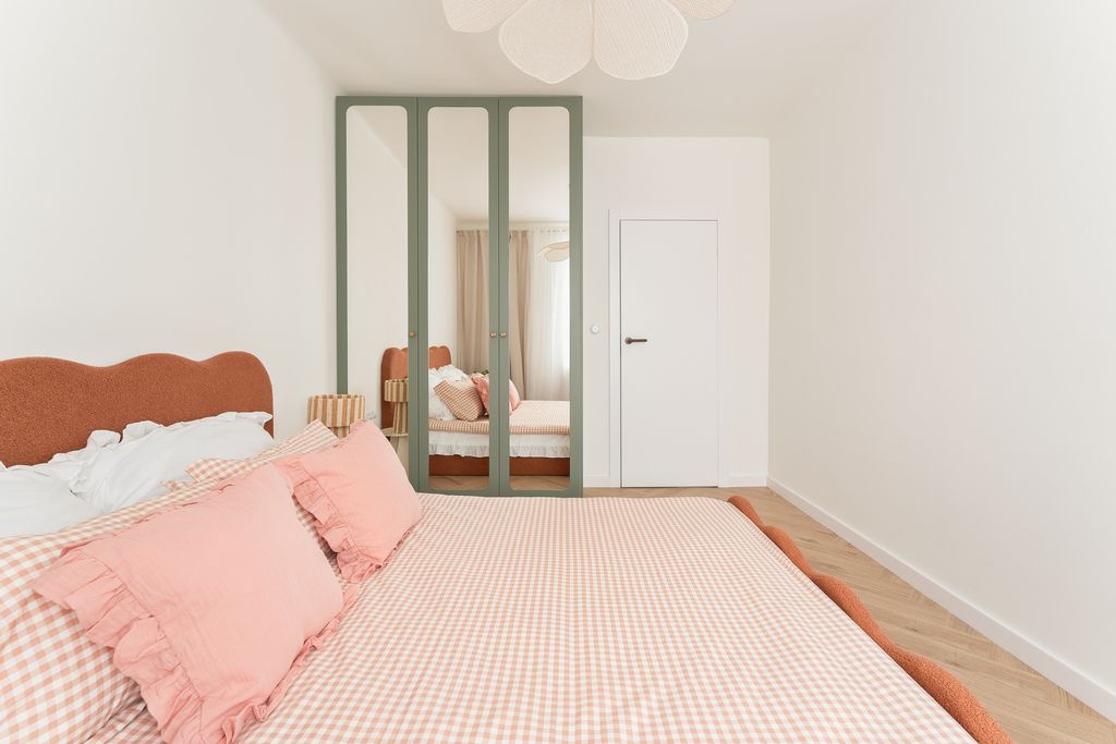 - Sypialnia z łóżkiem 160 cm i pojemną trzydrzwiową szafą w zabudowie