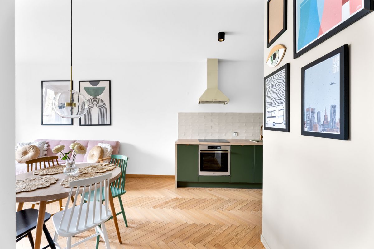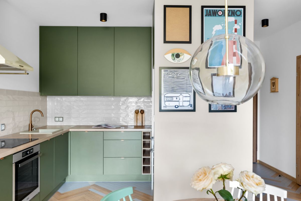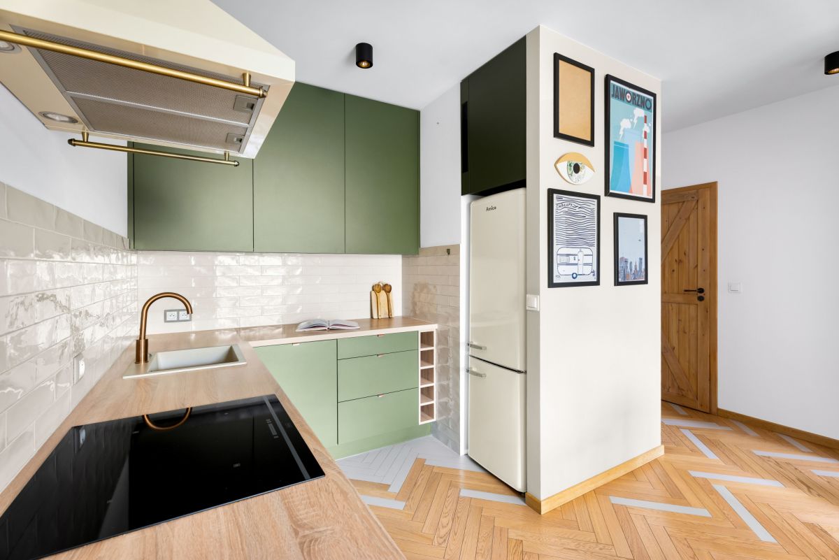 stylowy aneks kuchenny, w pełni wyposażony w sprzęt AGD