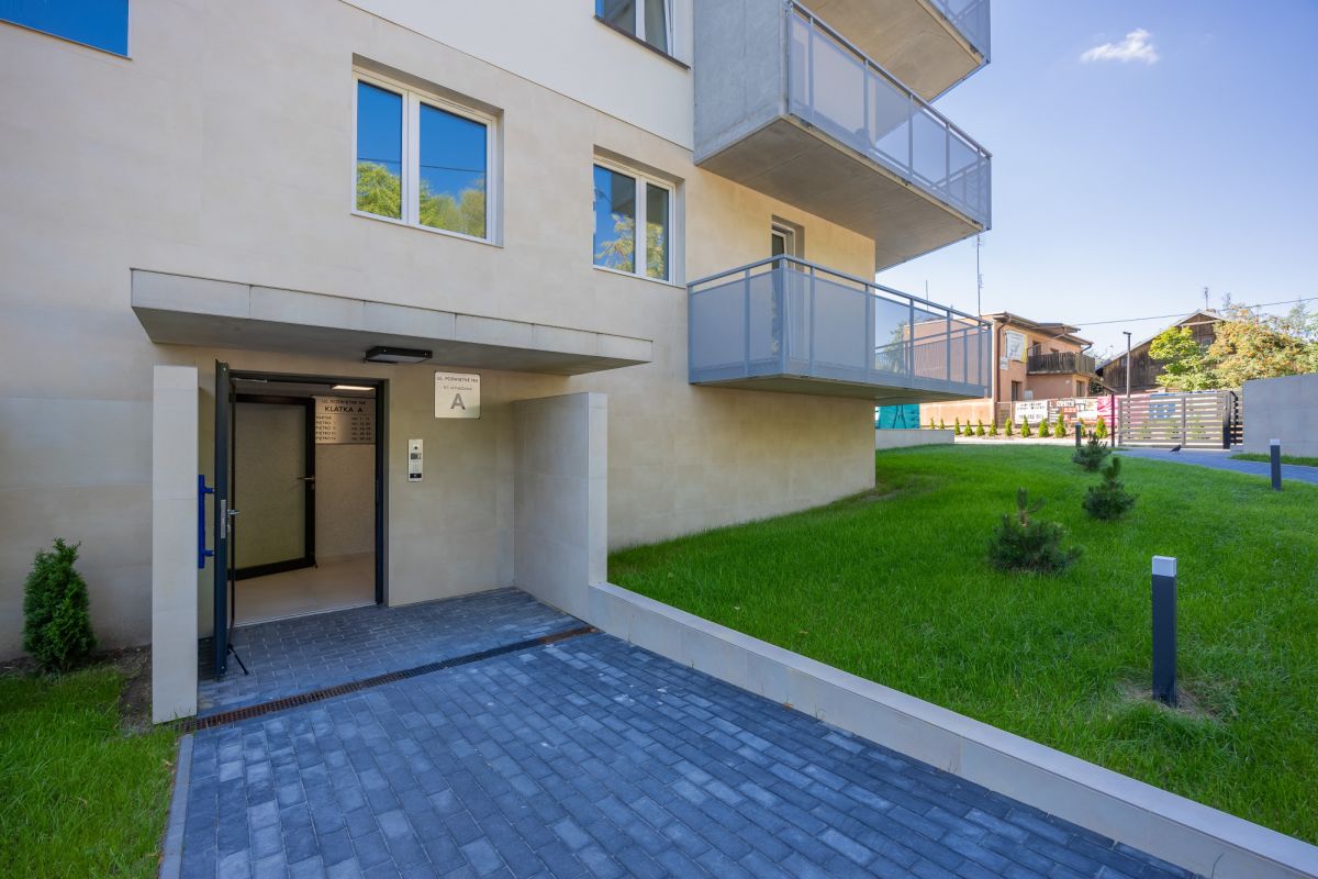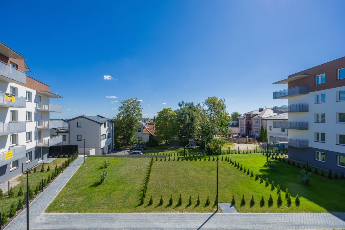Lokal znajduje się na drugim piętrze czteropiętrowego budynku oddanego do użytkowania w czerwcu 2024 roku. Do dyspozycji mieszkańców jest winda, garaż podziemny oraz zadbany, wewnętrzny ogród stanowiący przyjemną, zieloną przestrzeń do odpoczynku.