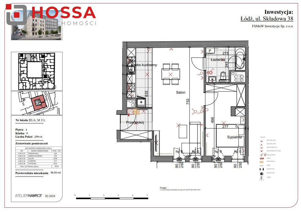 Nowoczesne i komfortowe mieszkanie na wynajem, w budynku z 2024 roku, zlokalizowanym w Śródmieściu Łodzi, przy ulicy Składowej i w całości przeznaczonym na wynajem.