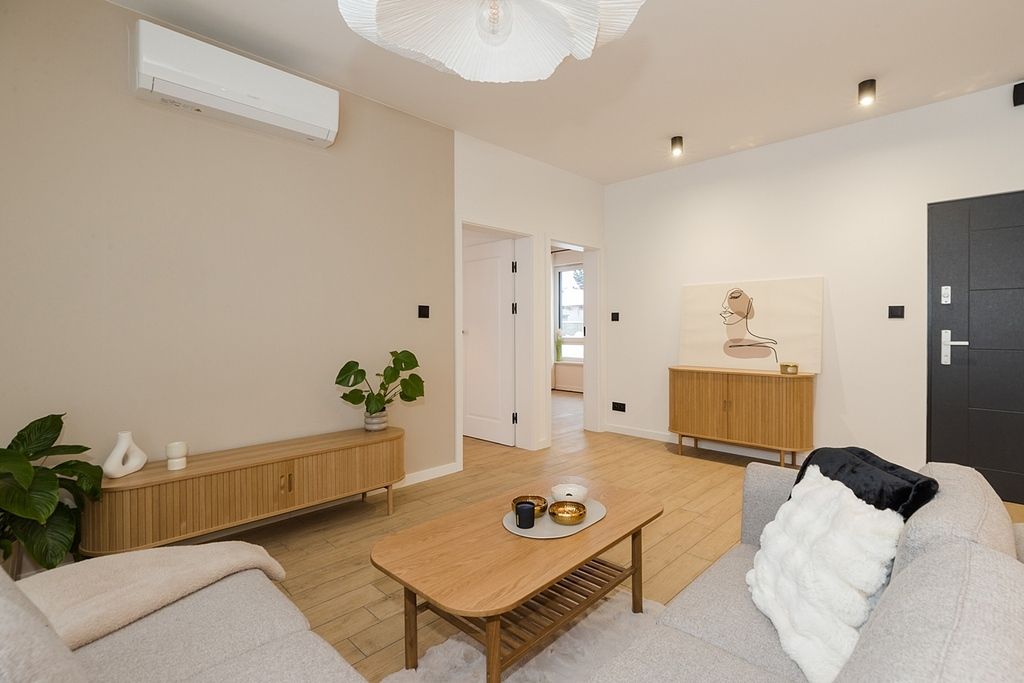 Do wynajęcia zupełnie nowe, nigdy nie zamieszkałe i w pełni umeblowane 3 pokojowe mieszkanie, zlokalizowane na parterze nowoczesnego budynku. To pierwszy wynajem, więc całe wyposażenie jest świeże i nieużywane.