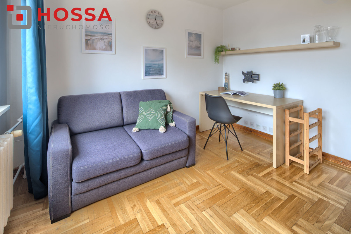 Mieszkanie w pełni umeblowane, dużo miejsc do przechowywania (dwie szafy wnękowe + szafa w przedpokoju, regał w gabinecie)