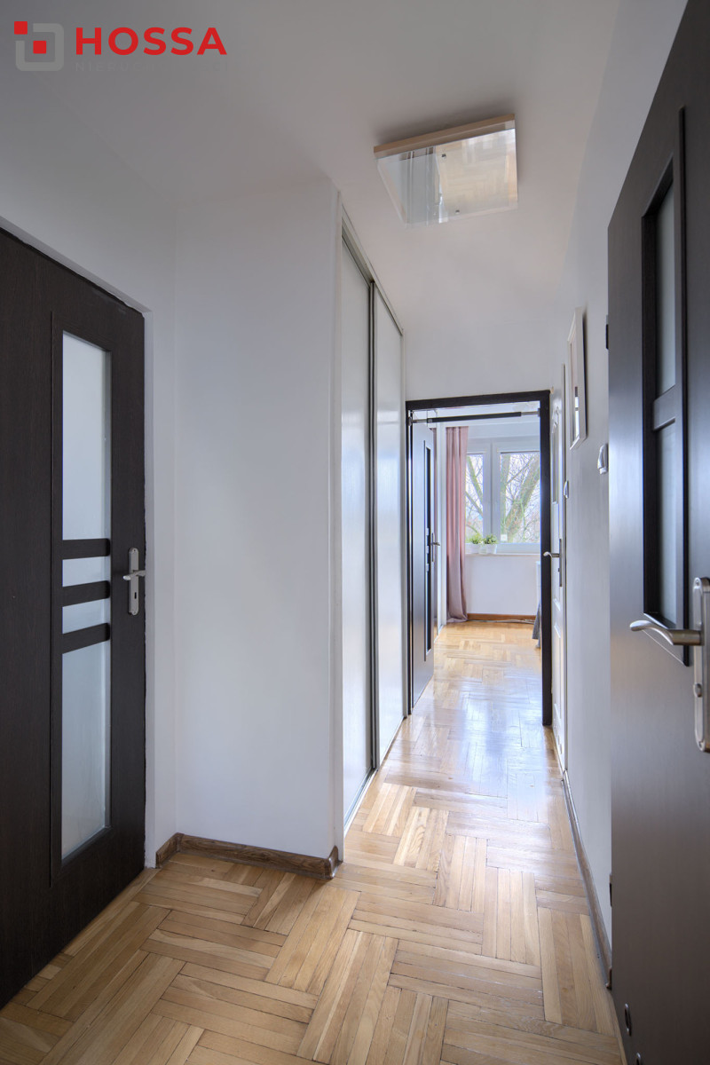 Mieszkanie usytuowane jest na czwartym piętrze w dziesięciopiętrowym budynku z 1977 roku. Mieszkanie jasne, okna bardzo dobrze doświetlają poszczególne pomieszczenia i znacząco powiększają przestrzeń.