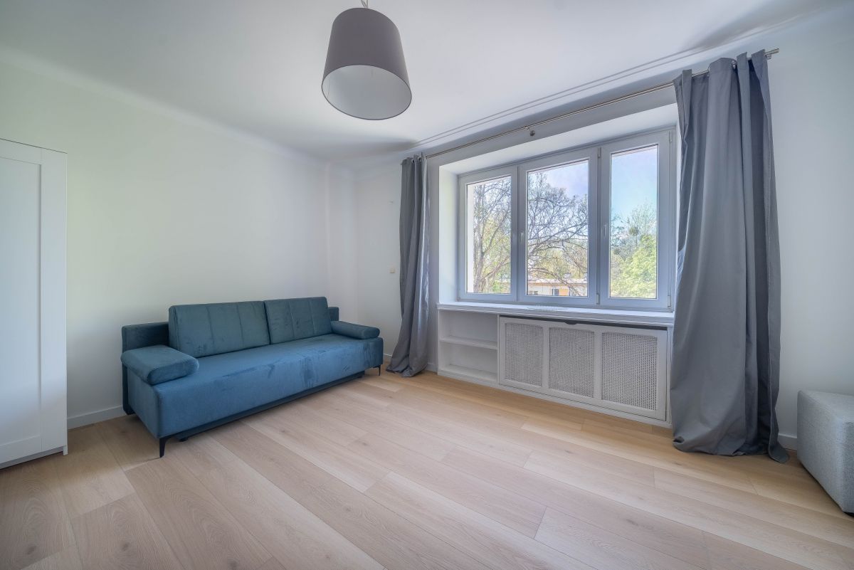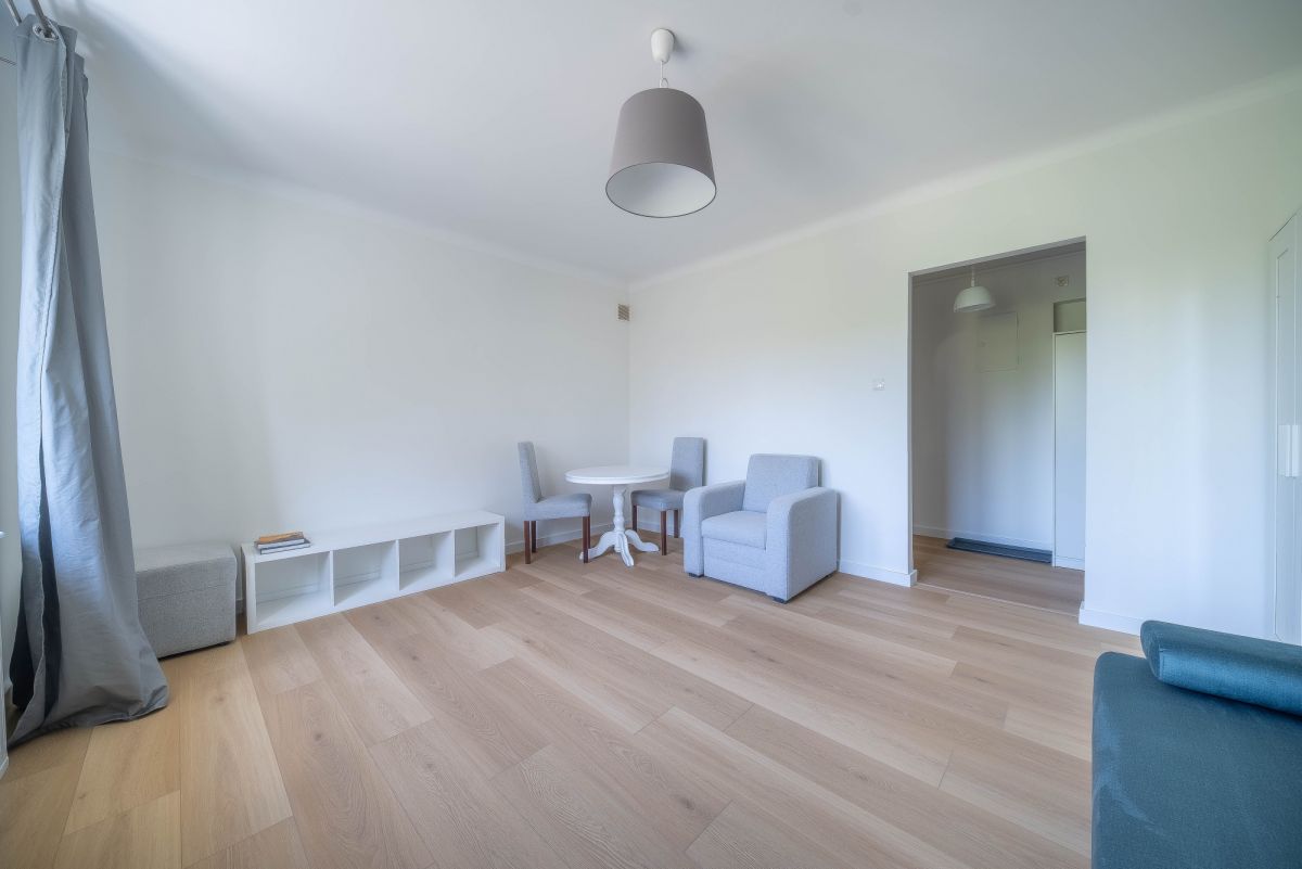 A cozy studio apartment for rent, located on the 3rd floor of a charming 1950s townhouse in Upper Mokotów. Perfect for a single tenant or a couple looking for a quiet neighborhood with excellent access to the city center.