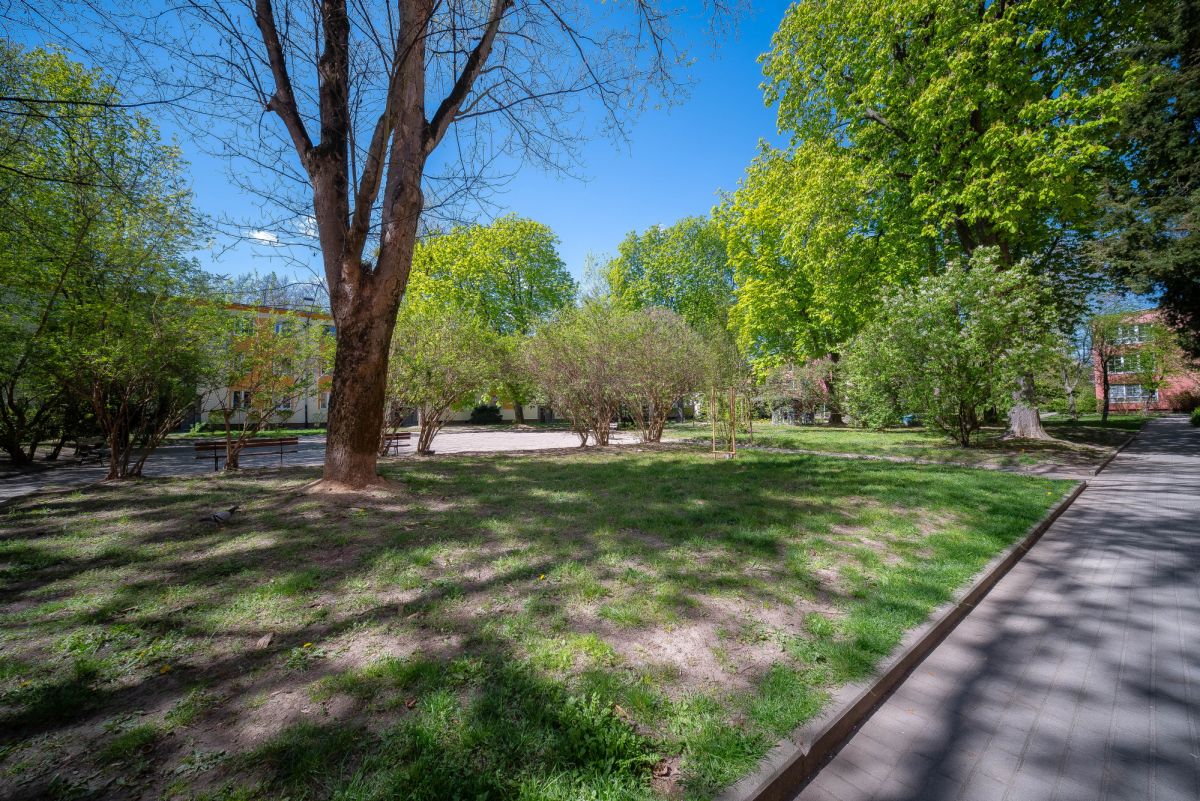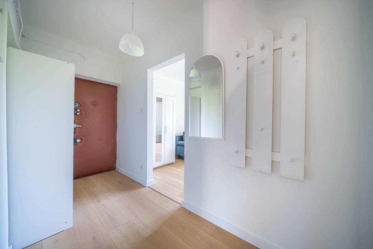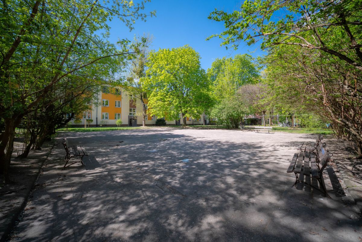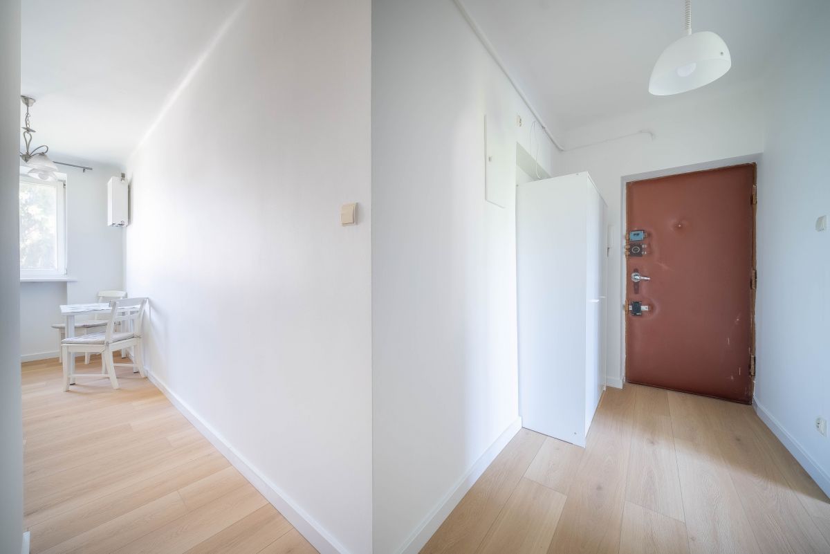 The brick building from the 1950s offers a solid structure and an intimate residential feel. The surrounding area provides full urban infrastructure, including shops, cafés, green spaces, and public transport connections, allowing quick access to central Warsaw and other districts.