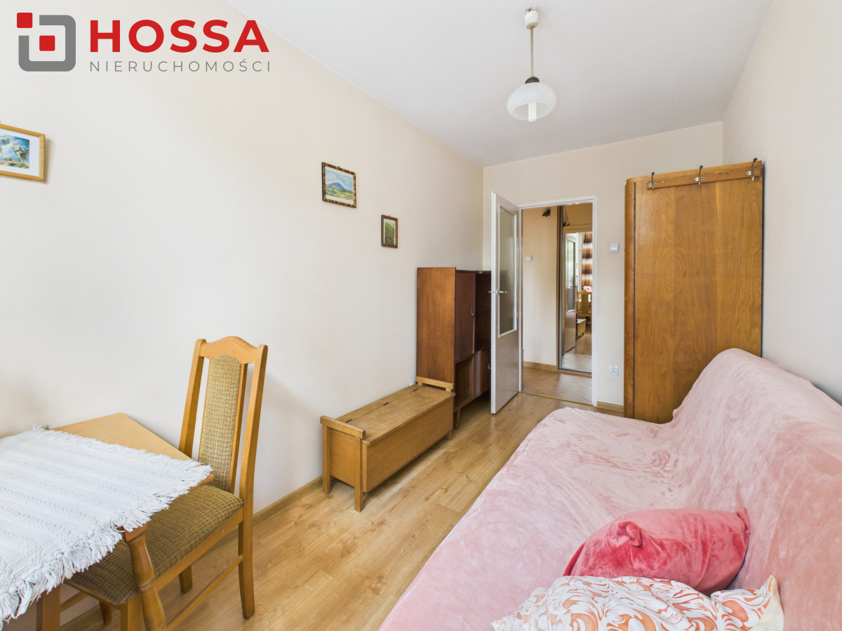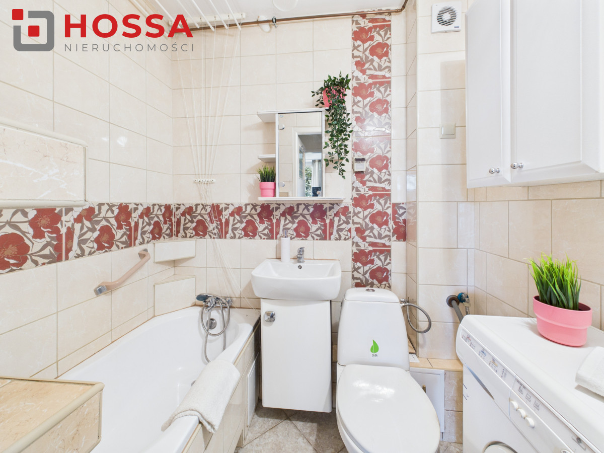 W skład mieszkania wchodzi przestronny pokój, sypialnia ,oddzielna kuchnia, przedpokój z dużą szafą w zabudowie i łazienka z wanna i pralką. Istnieje możliwość zabrania częściowo mebli (regał, fotele)