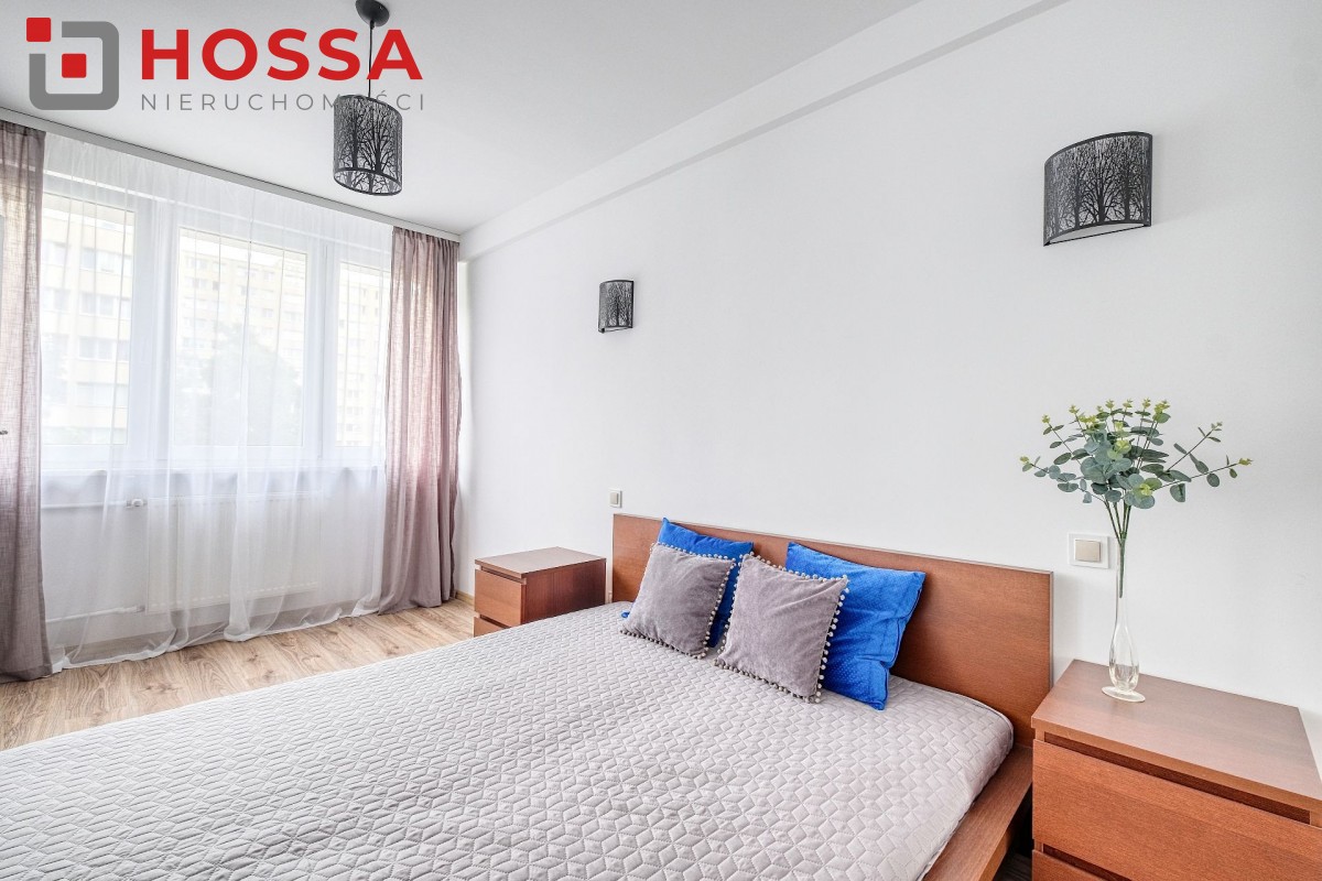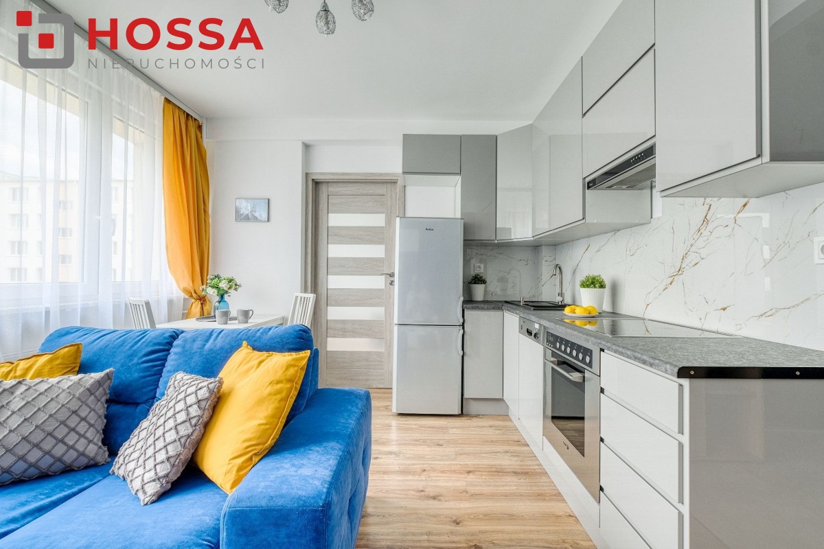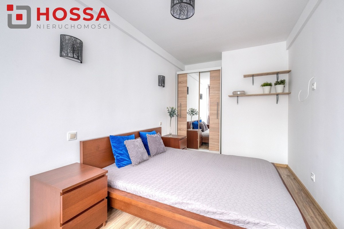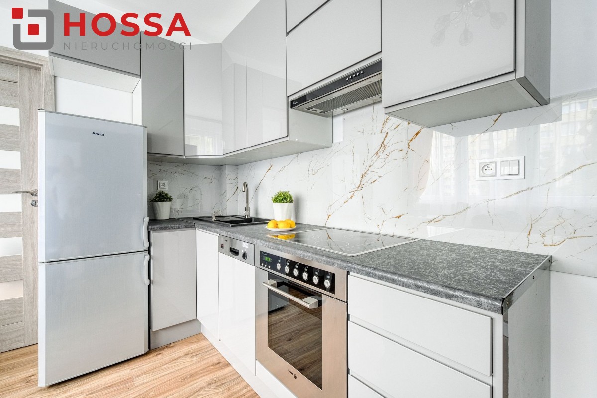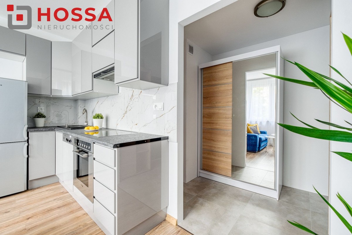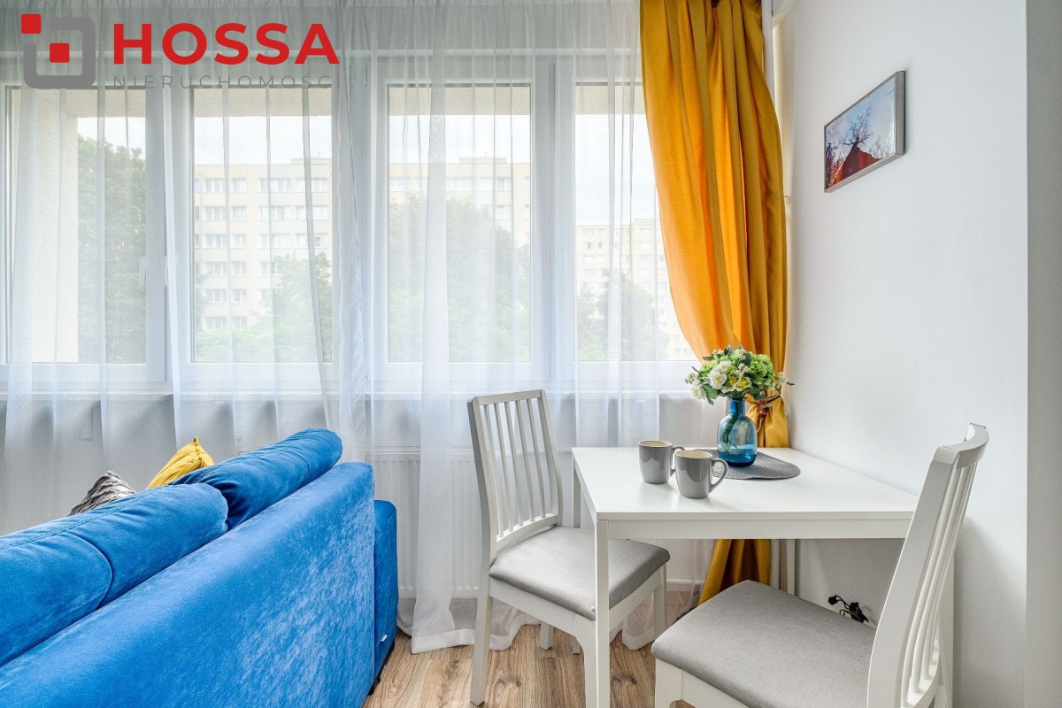Mieszkanie jest w pełni umeblowane i wyposażone w sprzęt AGD: pralka. lodówka, kuchenka elektryczna, czajnik, odkurzacz. W przedpokoju i sypialni pojemne szafy. Funkcjonalna kuchnia z dużą ilością szafek.