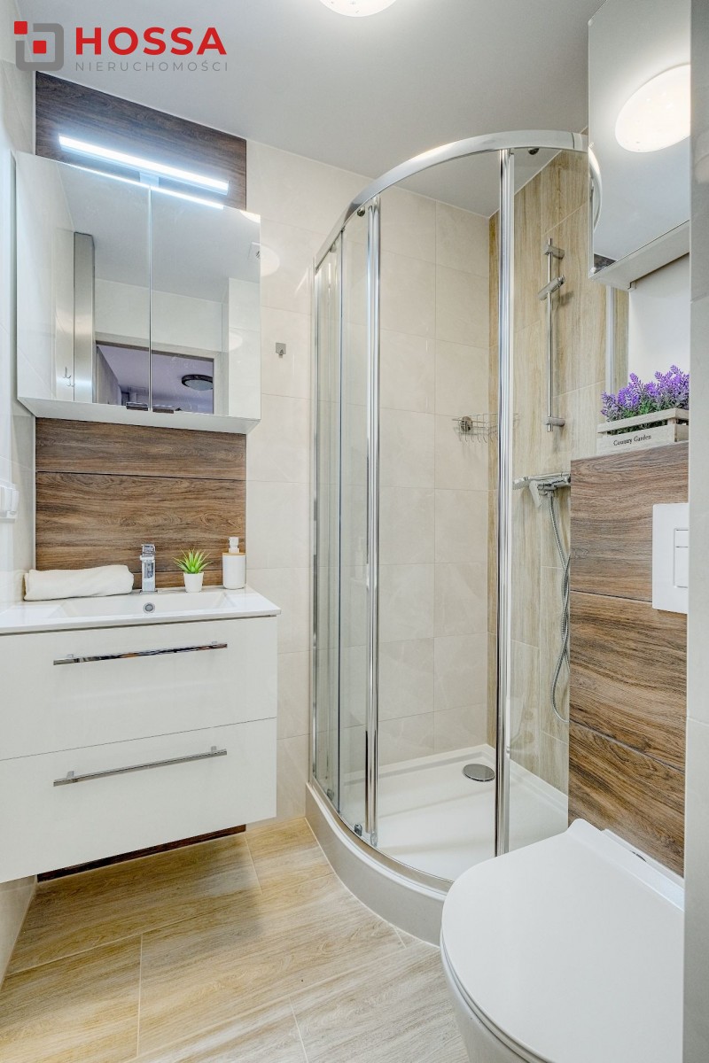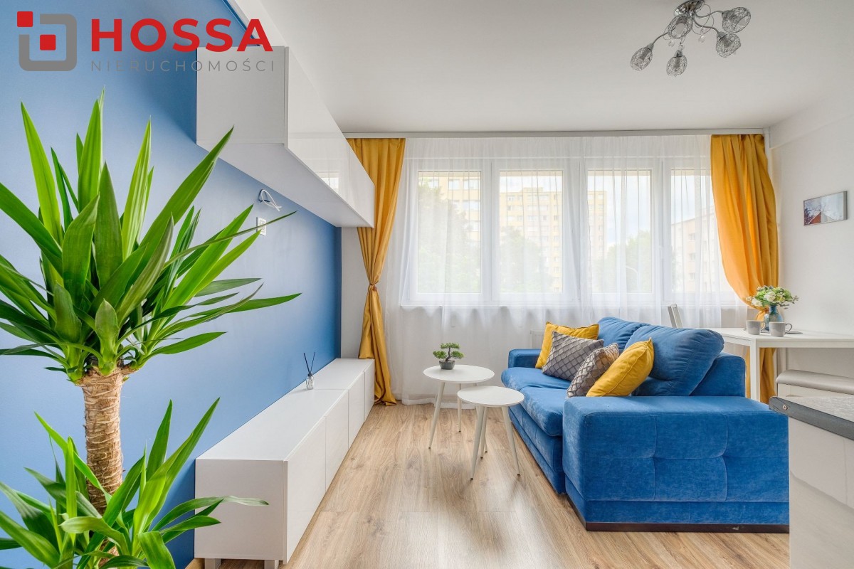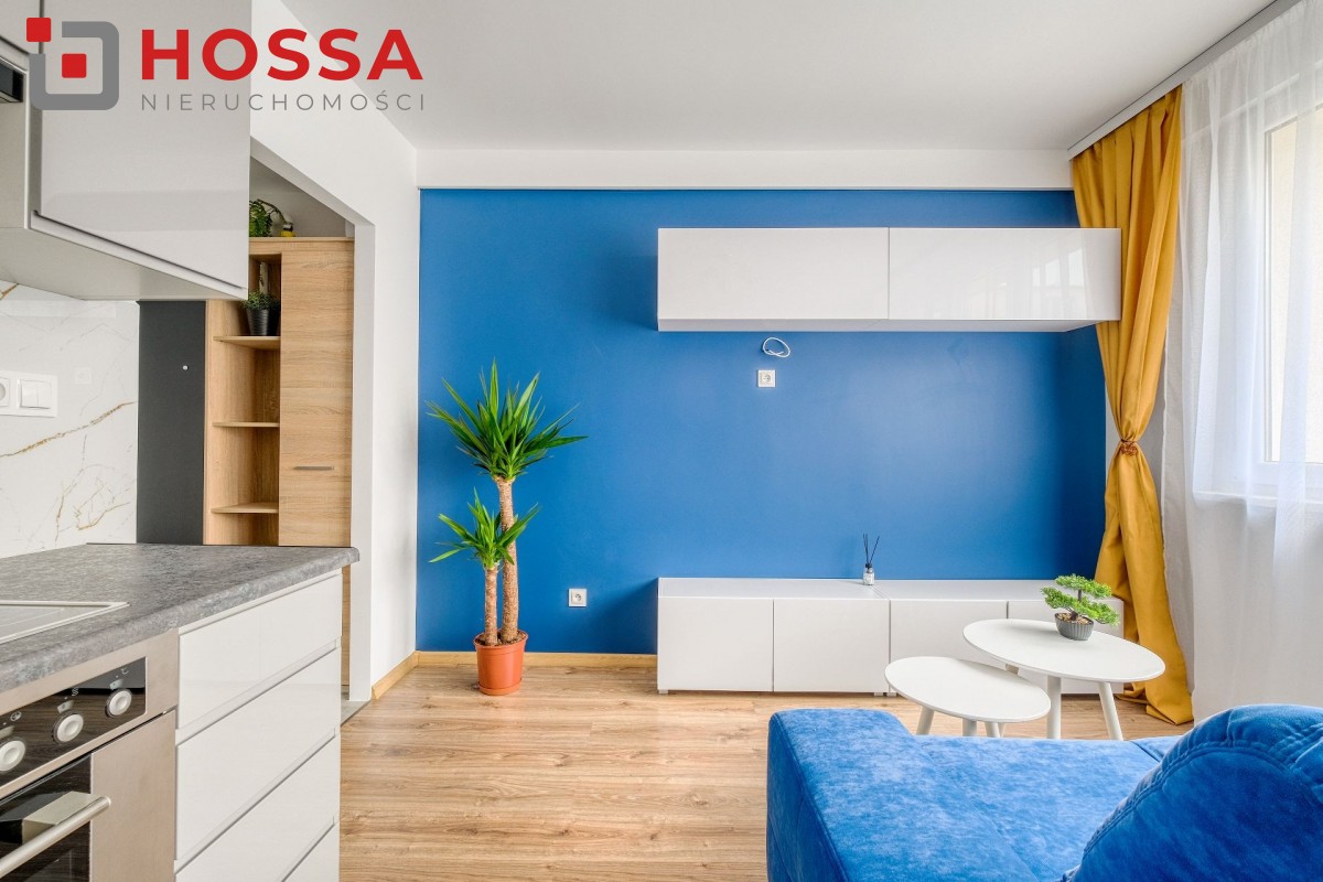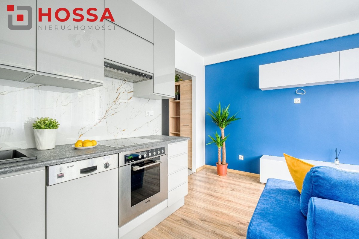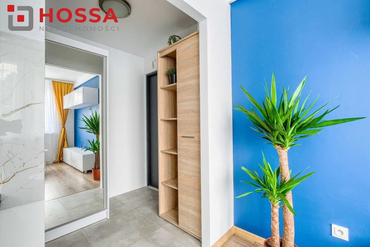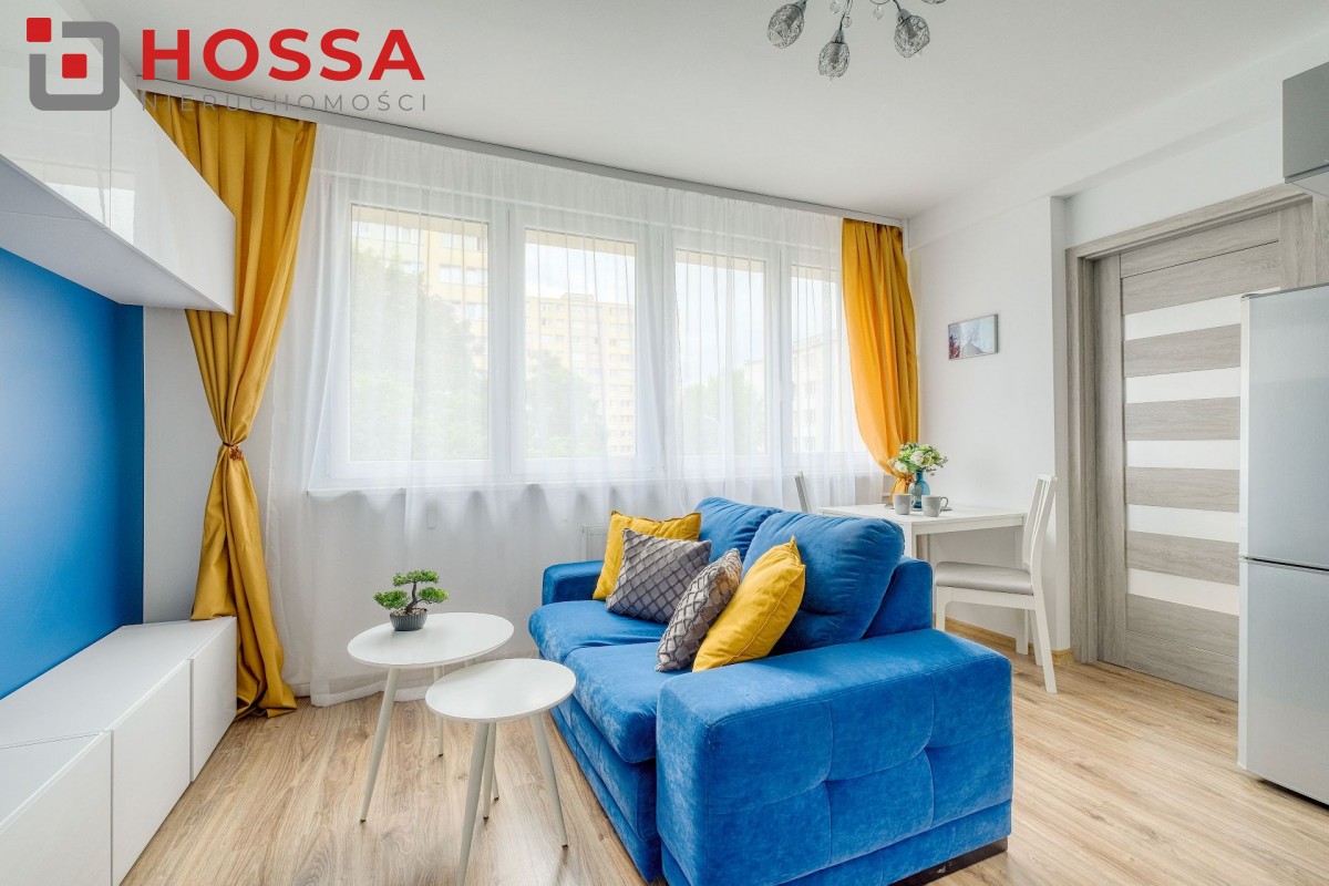 Mieszkanie jest w pełni umeblowane i wyposażone w sprzęt AGD: pralka. lodówka, kuchenka elektryczna, czajnik, odkurzacz. W przedpokoju i sypialni pojemne szafy. Funkcjonalna kuchnia z dużą ilością szafek.