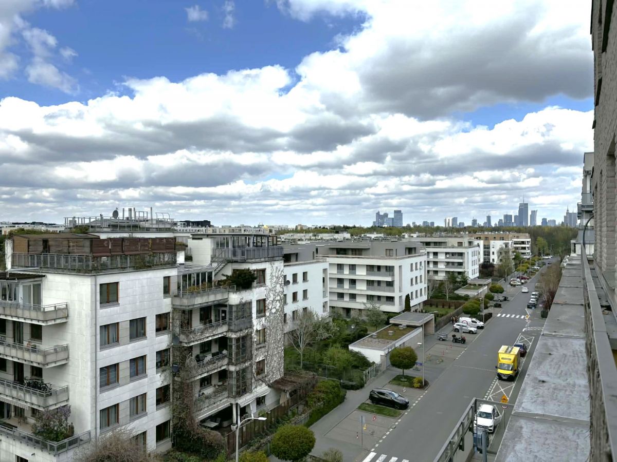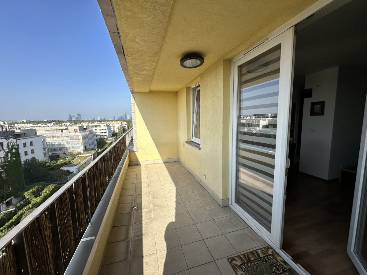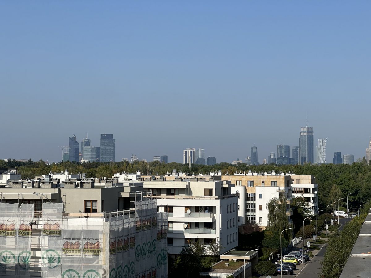 Z salonu prowadzi wyjście na duży balkon, z którego rozpościera się imponujący widok na panoramę Warszawy. Sypialnia posiada dodatkowy balkon z widokiem na ciche, zielone patio.