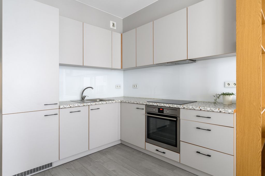 The apartment is located on the 5th floor, is fully furnished (sofa, table, chairs, bed, wardrobe) and equipped (dishwasher, washing machine, fridge, freezer, oven, hood).