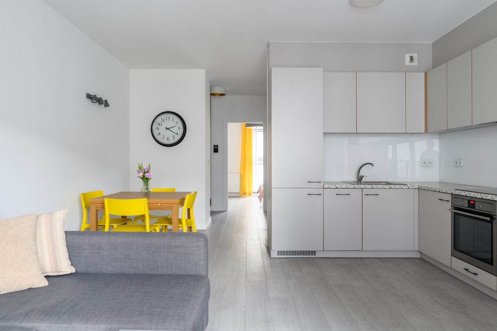 SCHEDULE The apartment consists of a spacious living room with a kitchen, a bathroom with a bathtub/shower, a hall, a bedroom and a balcony.