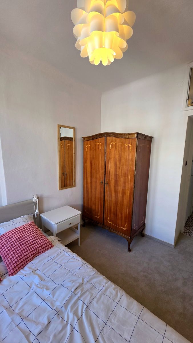 - sypialni z oknem, wyposażonej w dwuosobowe łóżko, szafkę nocną, szafę, lustro wiszące.