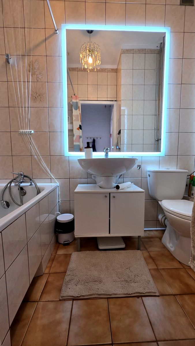 - łazienki z wanną, umywalką, lustrem podświetlanym i toaletą,