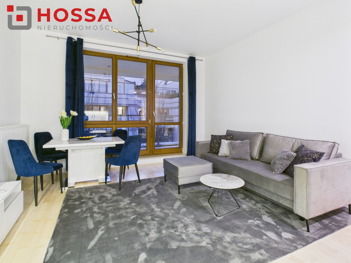 Wnętrze wyposażone jest w nowe meble i urządzone w nowoczesnym, spójnym stylu.