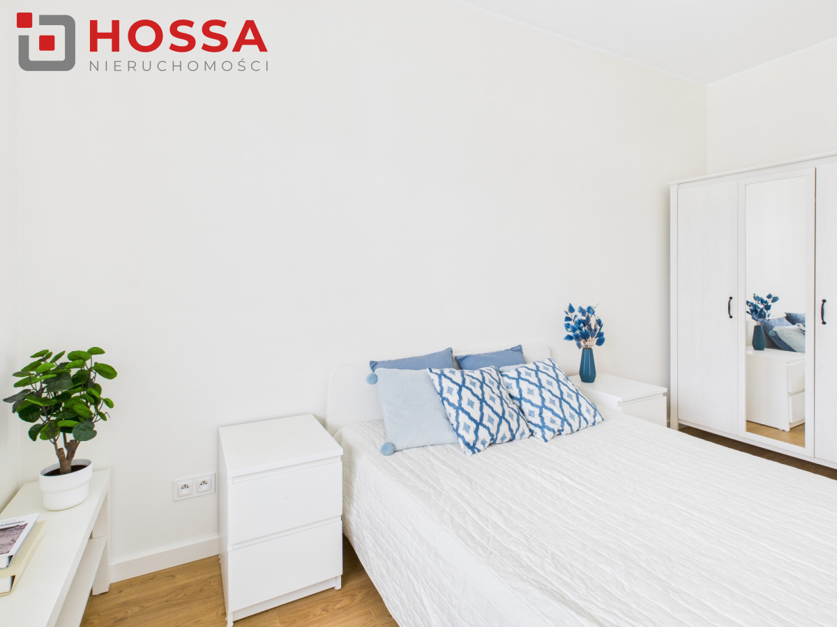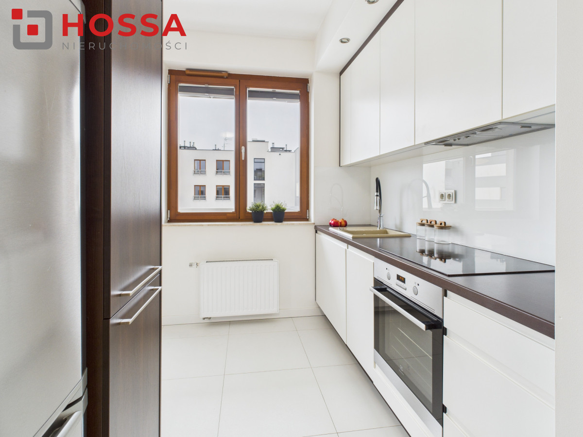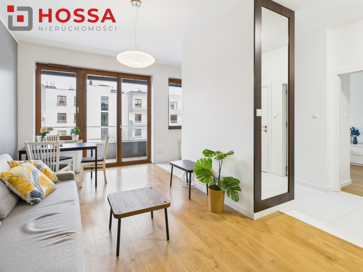 Nawynajem 2-pokojowy apartament o powierzchni 48 m², położony na 2. piętrze w kameralnym, 3-piętrowym budynku na osiedlu zamkniętym z monitoringiem, ochroną oraz zadbanym zielonym patio. Duże okna zapewniają bardzo dobre doświetlenie wnętrz, a neutralna, nowoczesna aranżacja tworzy przestrzeń wygodną zarówno do pracy, jak i odpoczynku.