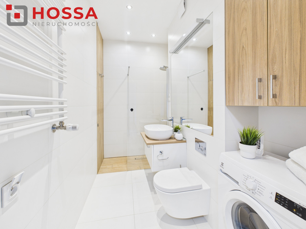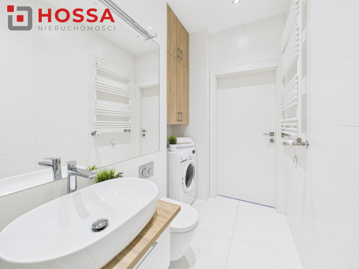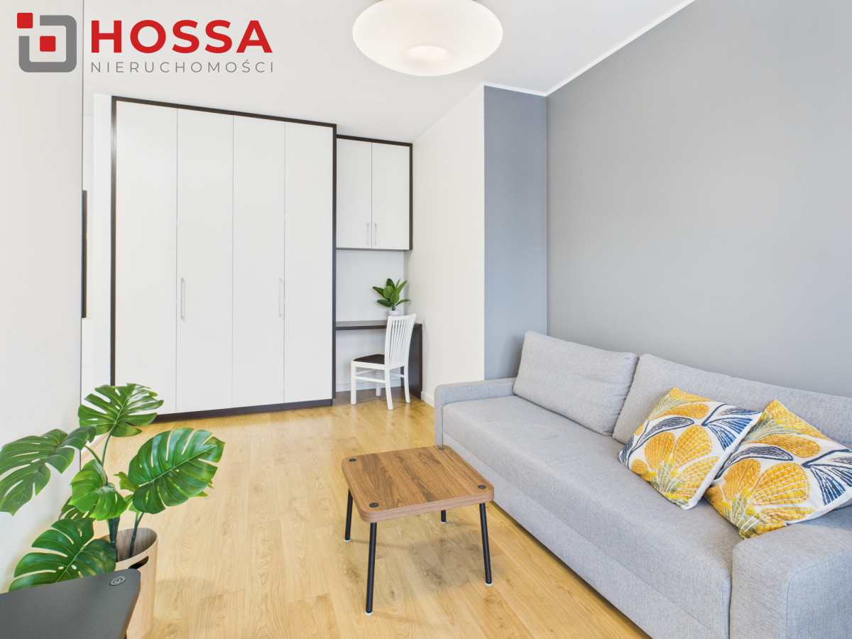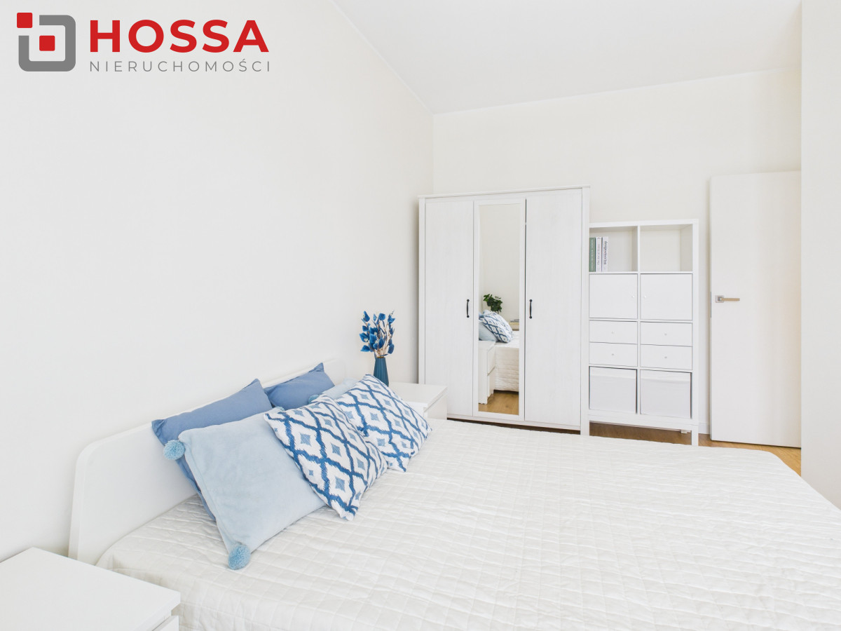 Nawynajem 2-pokojowy apartament o powierzchni 48 m², położony na 2. piętrze w kameralnym, 3-piętrowym budynku na osiedlu zamkniętym z monitoringiem, ochroną oraz zadbanym zielonym patio. Duże okna zapewniają bardzo dobre doświetlenie wnętrz, a neutralna, nowoczesna aranżacja tworzy przestrzeń wygodną zarówno do pracy, jak i odpoczynku.