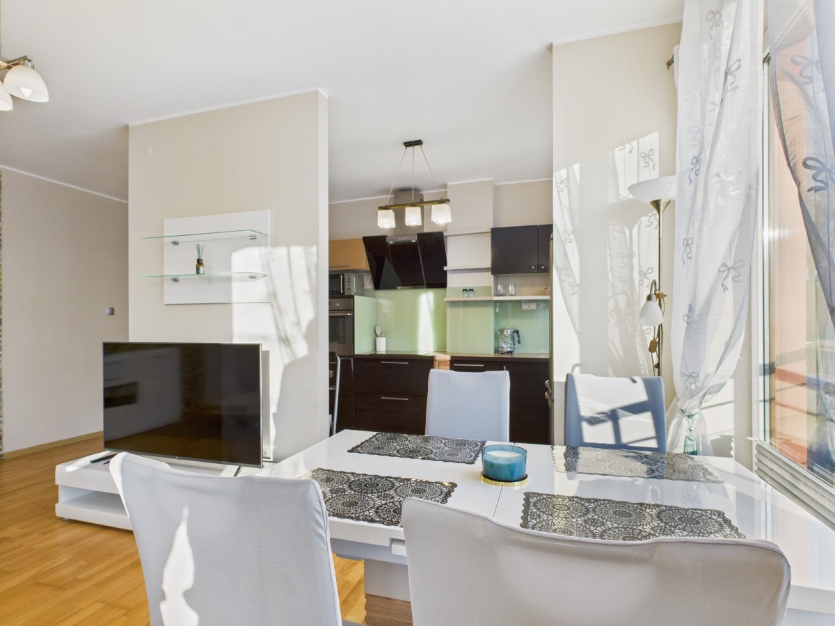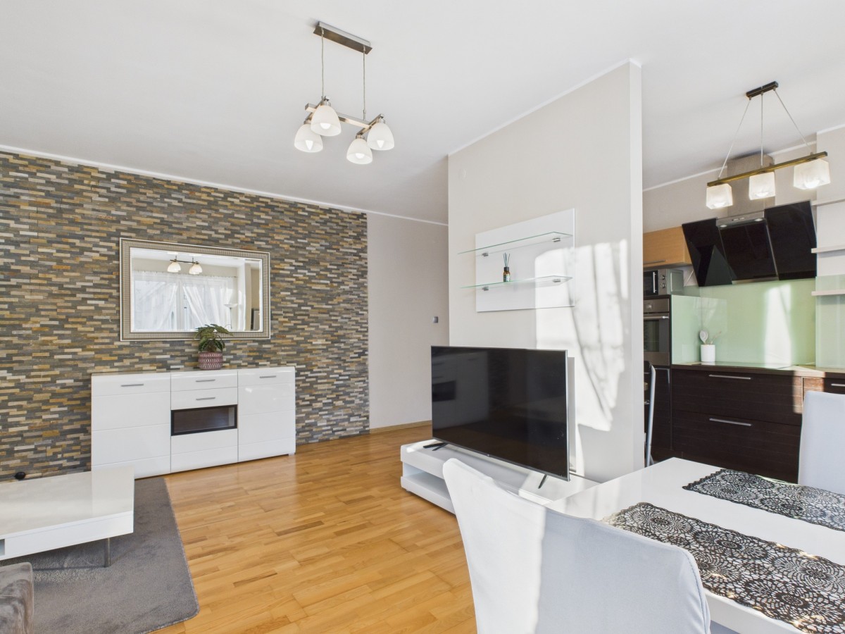 mieszkanie posiada pełne wyposażenie AGD (lodówka, piekarnik, płyta indukcyjna, zmywarka, pralka, telewizje, ) oraz nowoczesne meble. Wszystko urządzone w dobrym standardzie, z dbałością o detale i komfort przyszłych najemców.