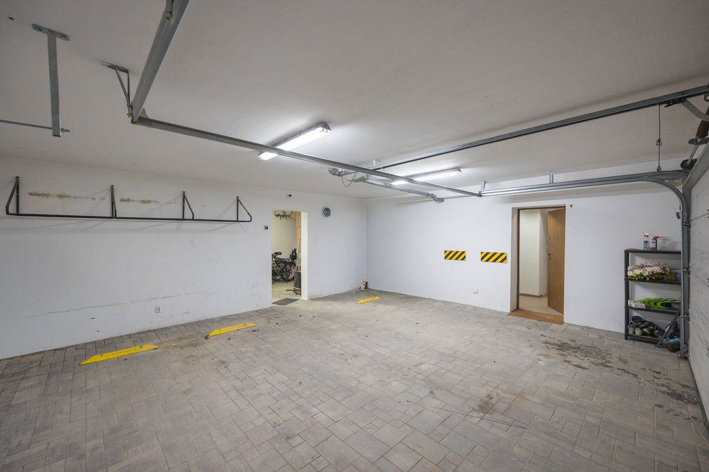 Dom wyposażony jest w system alarmowy, monitoring zewnętrzny oraz wideodomofon, co zapewnia mieszkańcom poczucie bezpieczeństwa. Brama garażowa oraz wjazdowa są sterowane automatycznie.