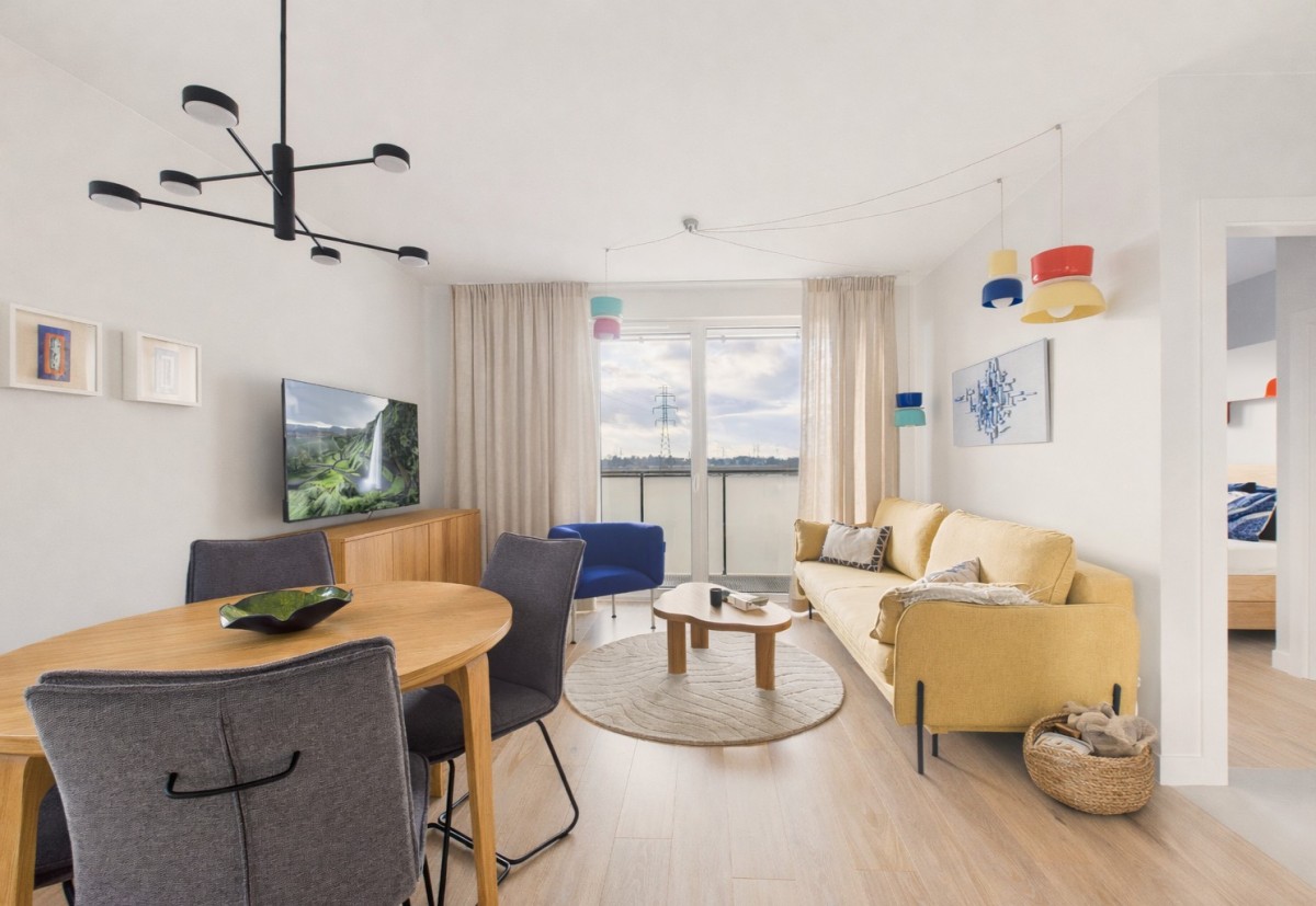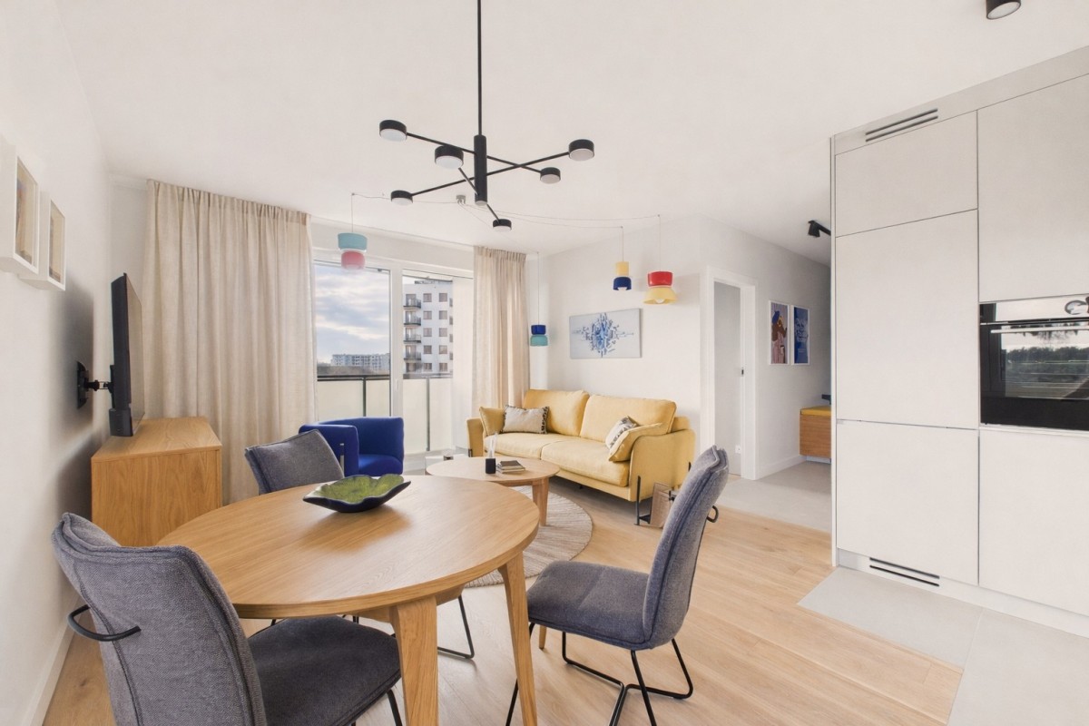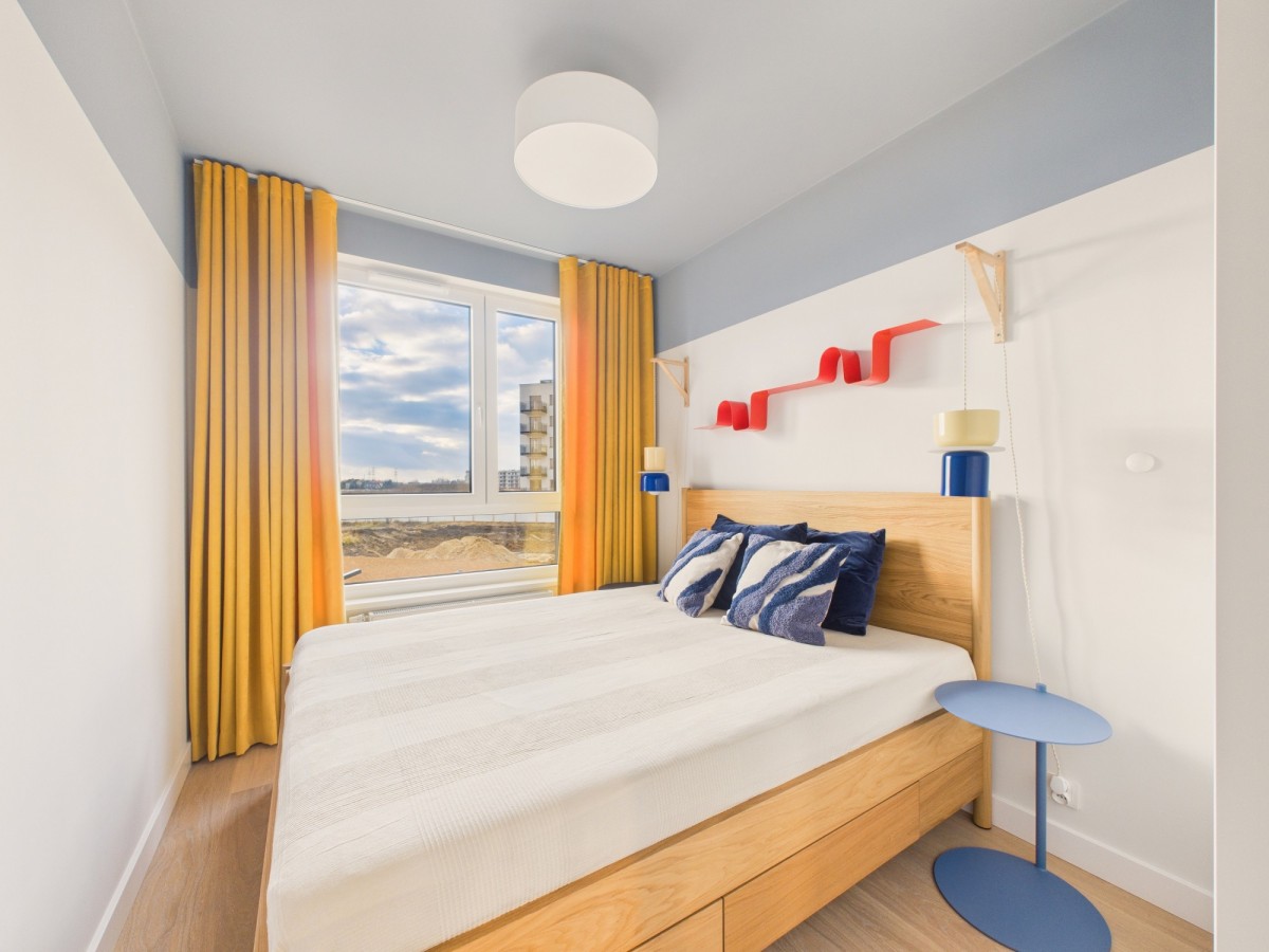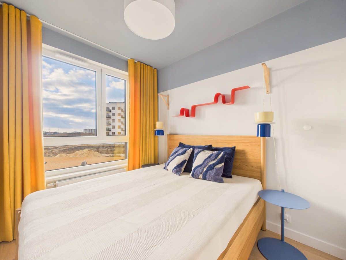 Na wynajem nowoczesne, nowe mieszkanie o powierzchni 45 m², zlokalizowane na nowym osiedlu przy ul. Szeligowskiej 35, bezpośrednio przy nowo wybudowanej stacji metra.