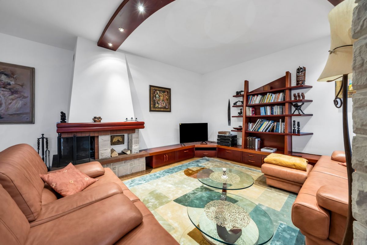 - salonu z przestrzenią wypoczynkową oraz przestrzenią jadalną, oraz przestrzenią ogrodu zimowego, około 55 m2