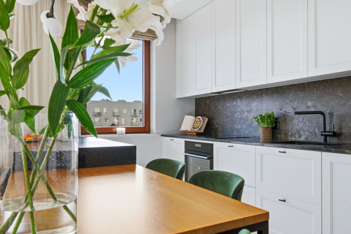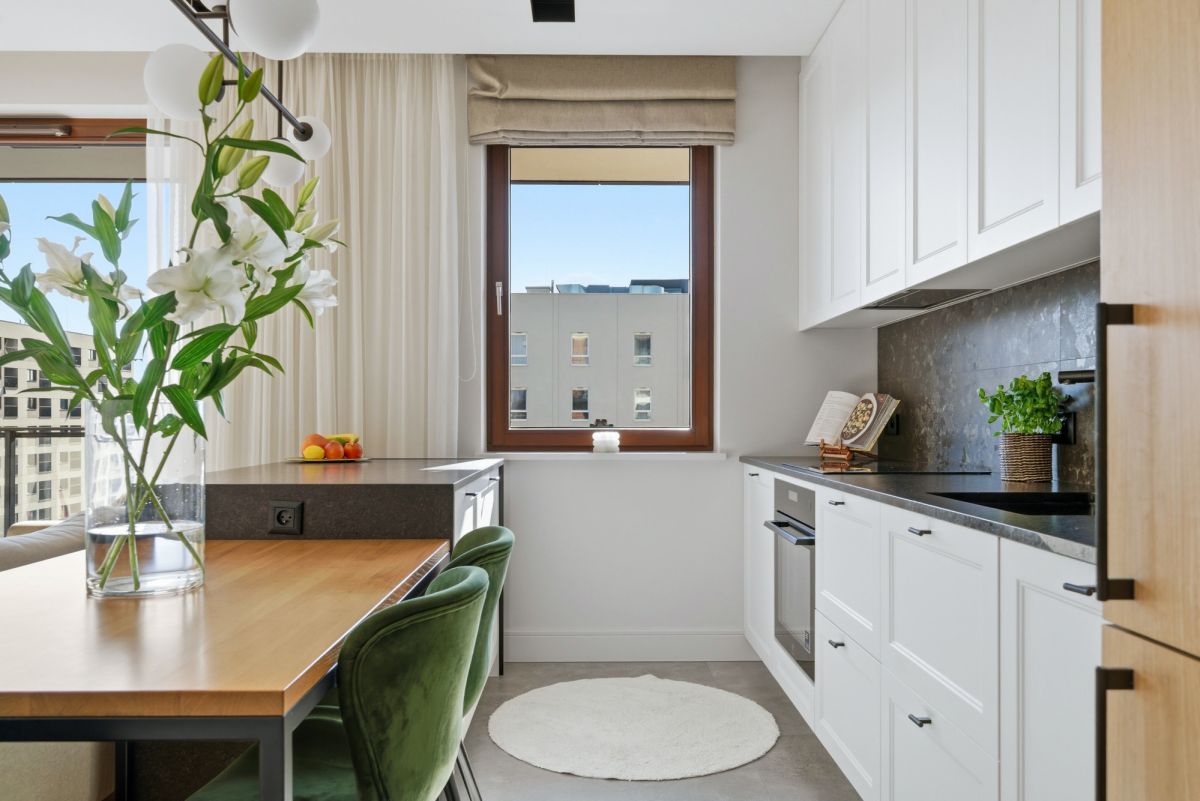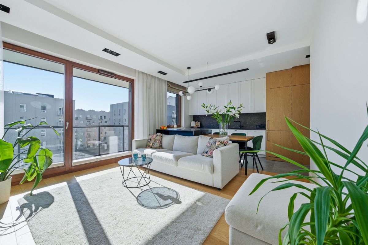 Mieszkanie jest w pełni umeblowane i gotowe do wprowadzenia. Duże przeszklenia zapewniają świetne doświetlenie wnętrza, a nowoczesne wykończenie oraz stonowana kolorystyka tworzą elegancką i ponadczasową przestrzeń. Oddzielna suszarka i pralka to duży atut podnoszący komfort codziennego użytkowania.