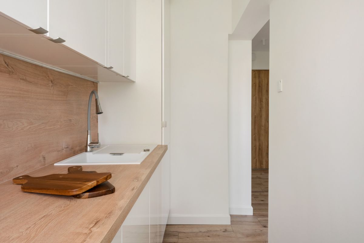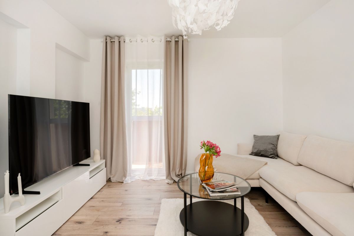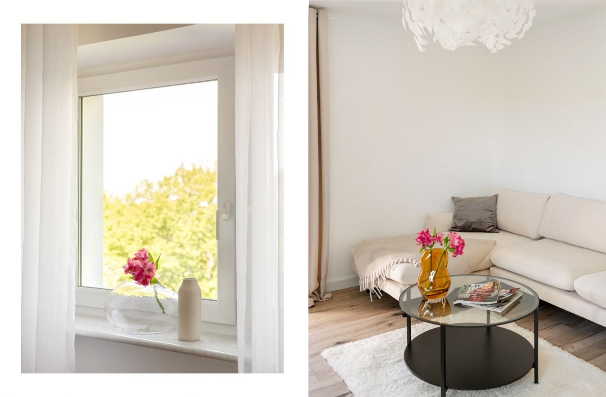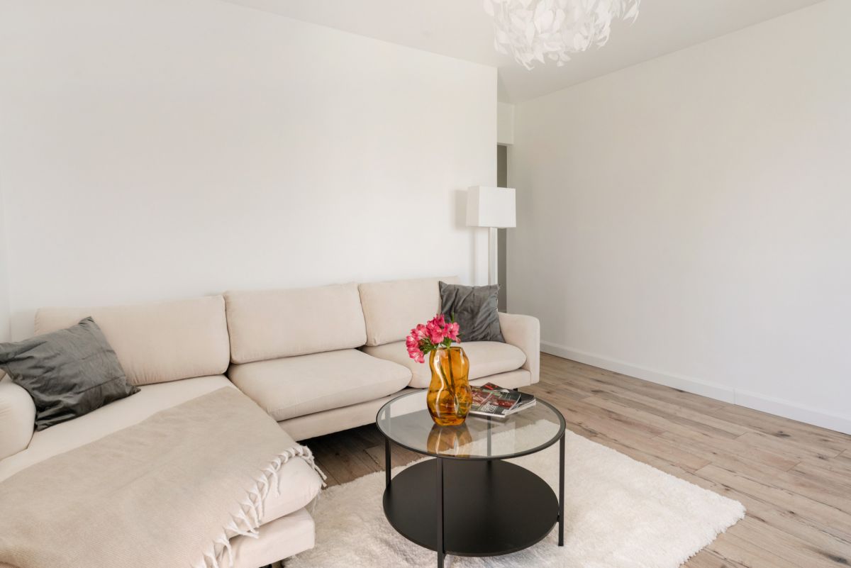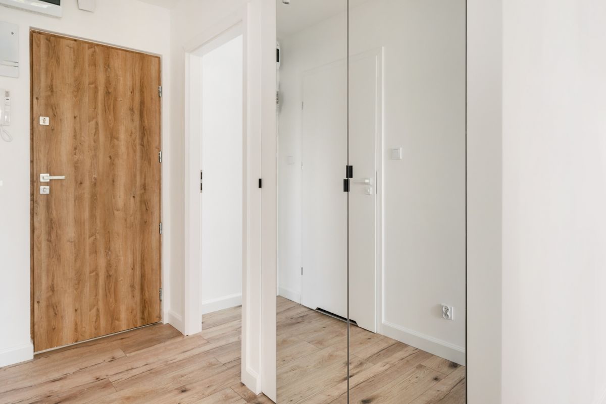 Mieszkanie w pełni funkcjonalne z miejscem do przechowywania, utrzymane jest w ponadczasowym, jasnym stylu.
